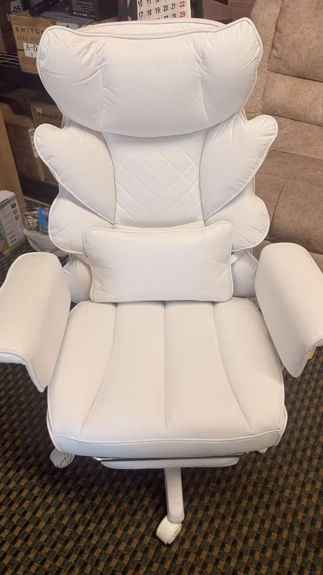 Dowinx Big and Tall Office Chair with Pocket Spring Cushion,High Back Computer Gaming Chairs with Adjustable Armrests,Executive Desk Chairs with Lumbar Support and Footrest,Fabric White
