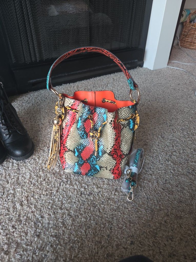 Aldo Multicolor Snake Print Shoulder Hobo Bucket Bag
