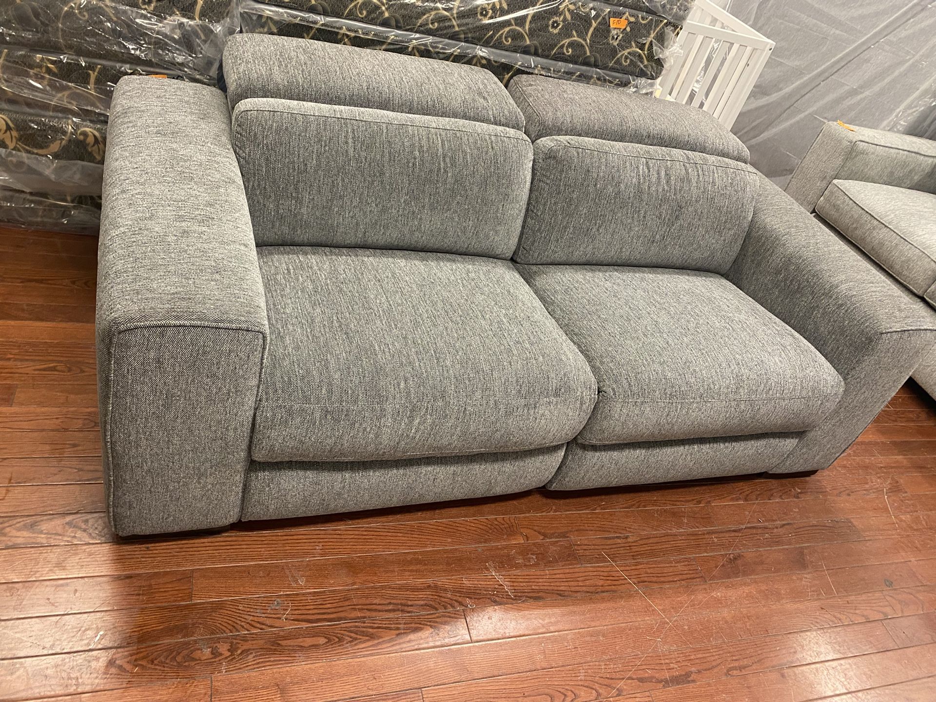 2PC POWER RECLINING LOVESEAT CHARCOAL GRAY FABRIC DIMENSION: 78” x 39”(D) x 32”(H) NEW/OPEN BOX ITEM PRICE $249.99+TAX( CASH/CREDIT)