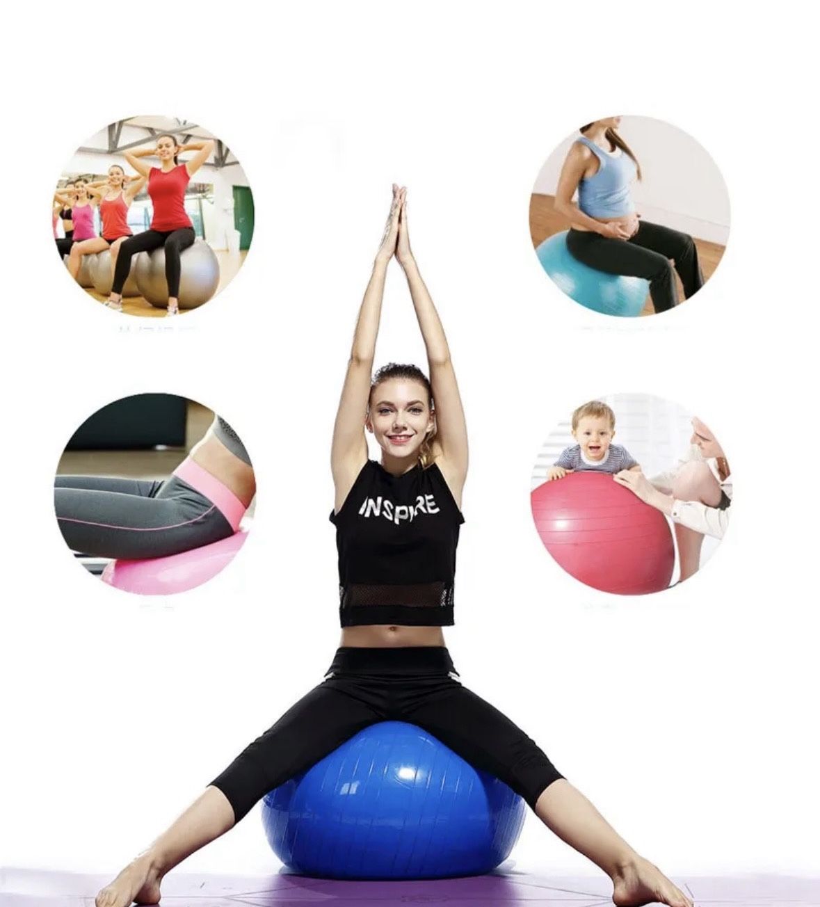 Exercise Yoga Ball, Blue. Measures 30” (75cm). Anti-Slip. Made with Gym Grade Heavy Duty PVC. For Fitness, Balance & Core Workout. Includes Pump. Brand new in packaging. (6390) #balaceball #yogaball #fitness #exerciseequip #pilatesball