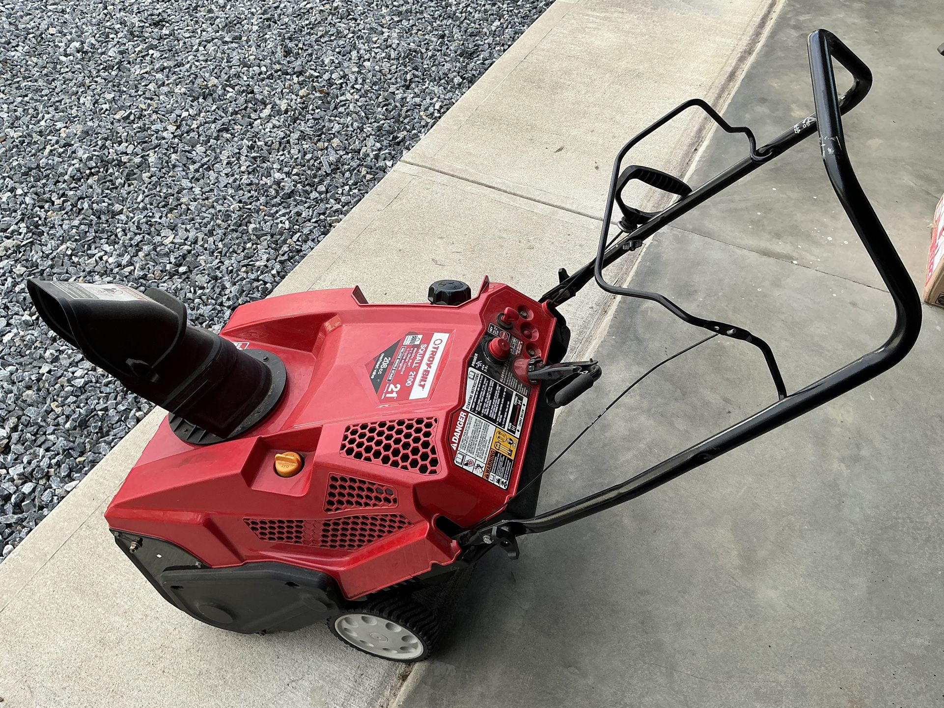 Troy-Bilt Snow Squall 2100 Snow Thrower. 21’’ Path, Electric start, Shute Control. 4 cycle engine 208cc overhead valve. Paddles are still in great shape. Runs great. Snow season around the corner come check it out before buying brand new. Mom in PA decided to hire to have snow removed no longer needs machine. Check out Pictures and video.