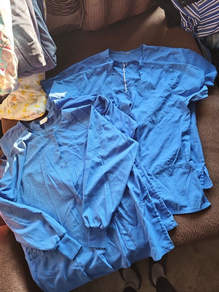 Womens Blue medical scrubs 2 short sleeved 2 long sleeved All 4 for $10