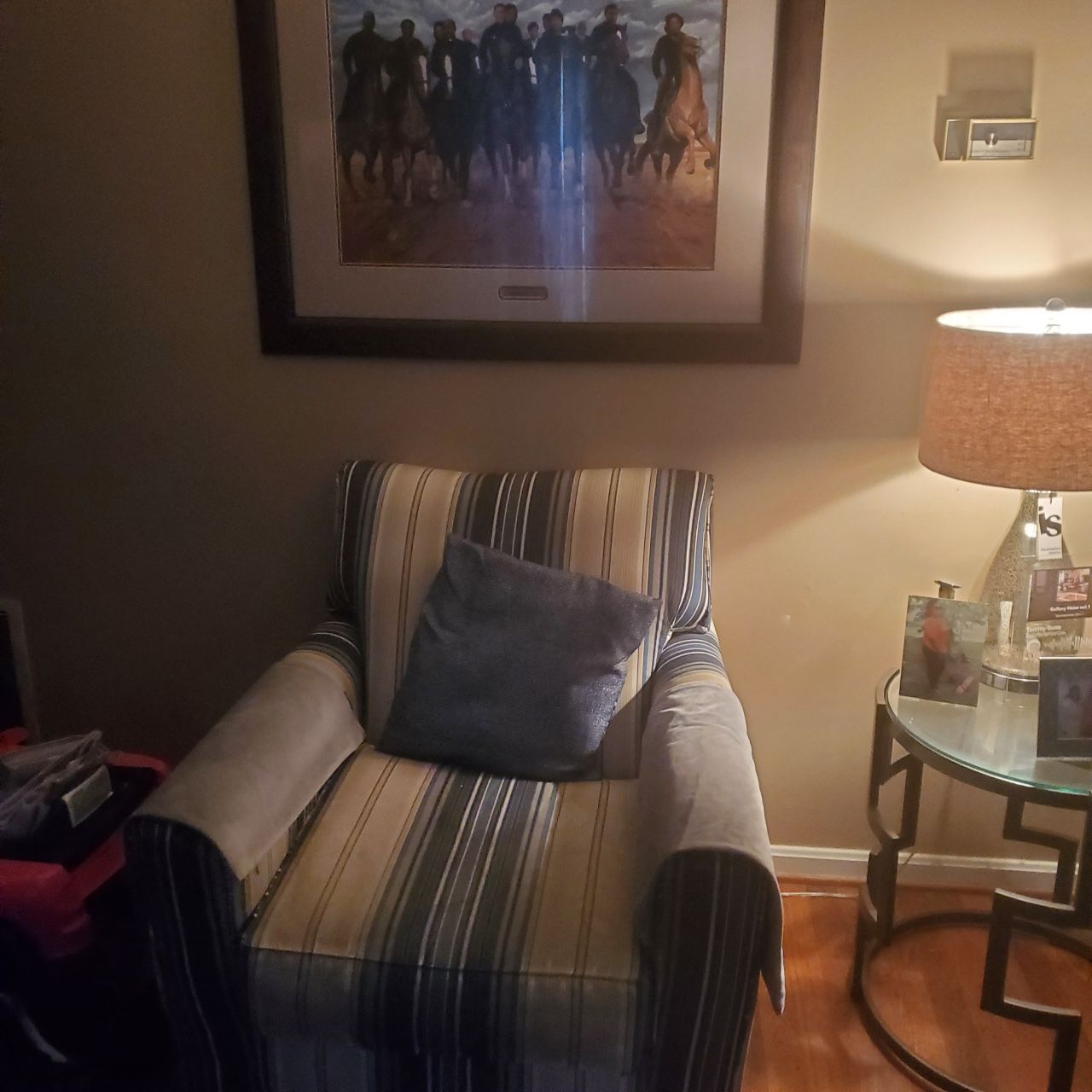 Blue living room set. Fair condition must pickup. Curtains and balance included.
