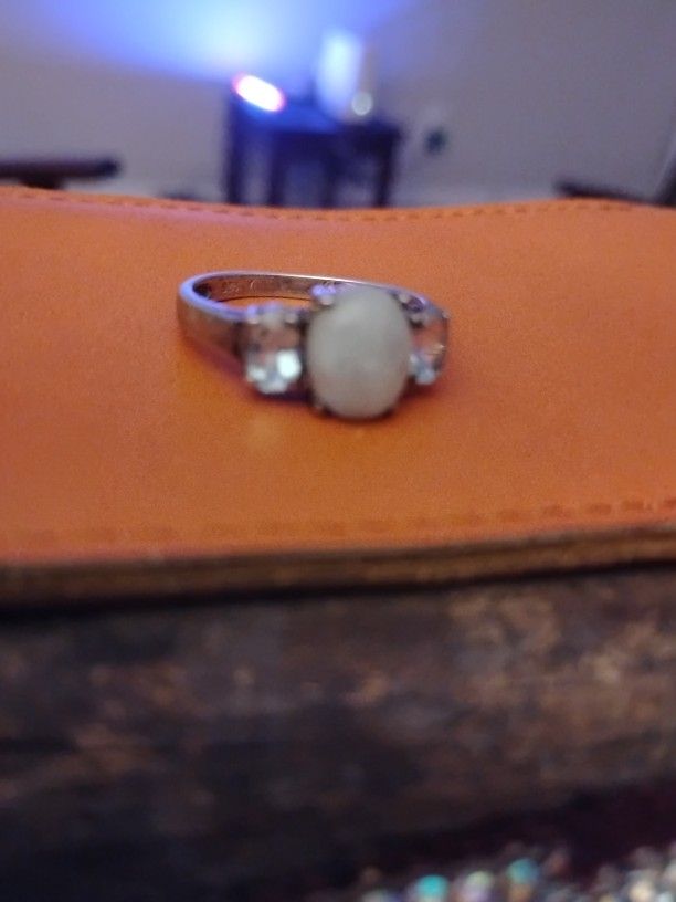 Vtg Avon Sterling Silver Size 6 Ring W/ Moonstone & Light Blue Stones