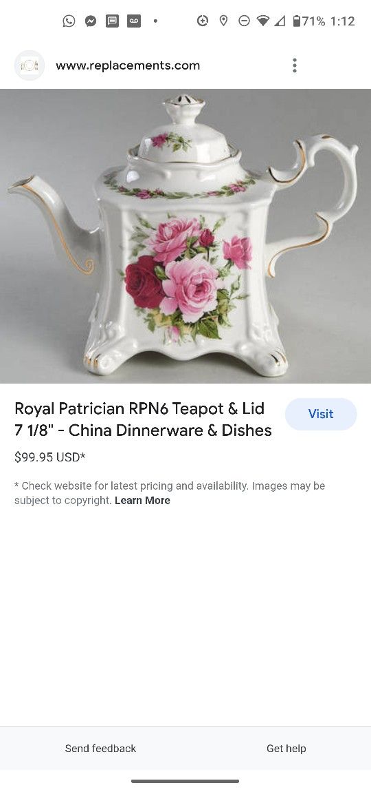 VINTAGE CROWN DORSET STAFFORDSHIRE ENGLAND TEA POT ROSE GOLD PLATED TRIM