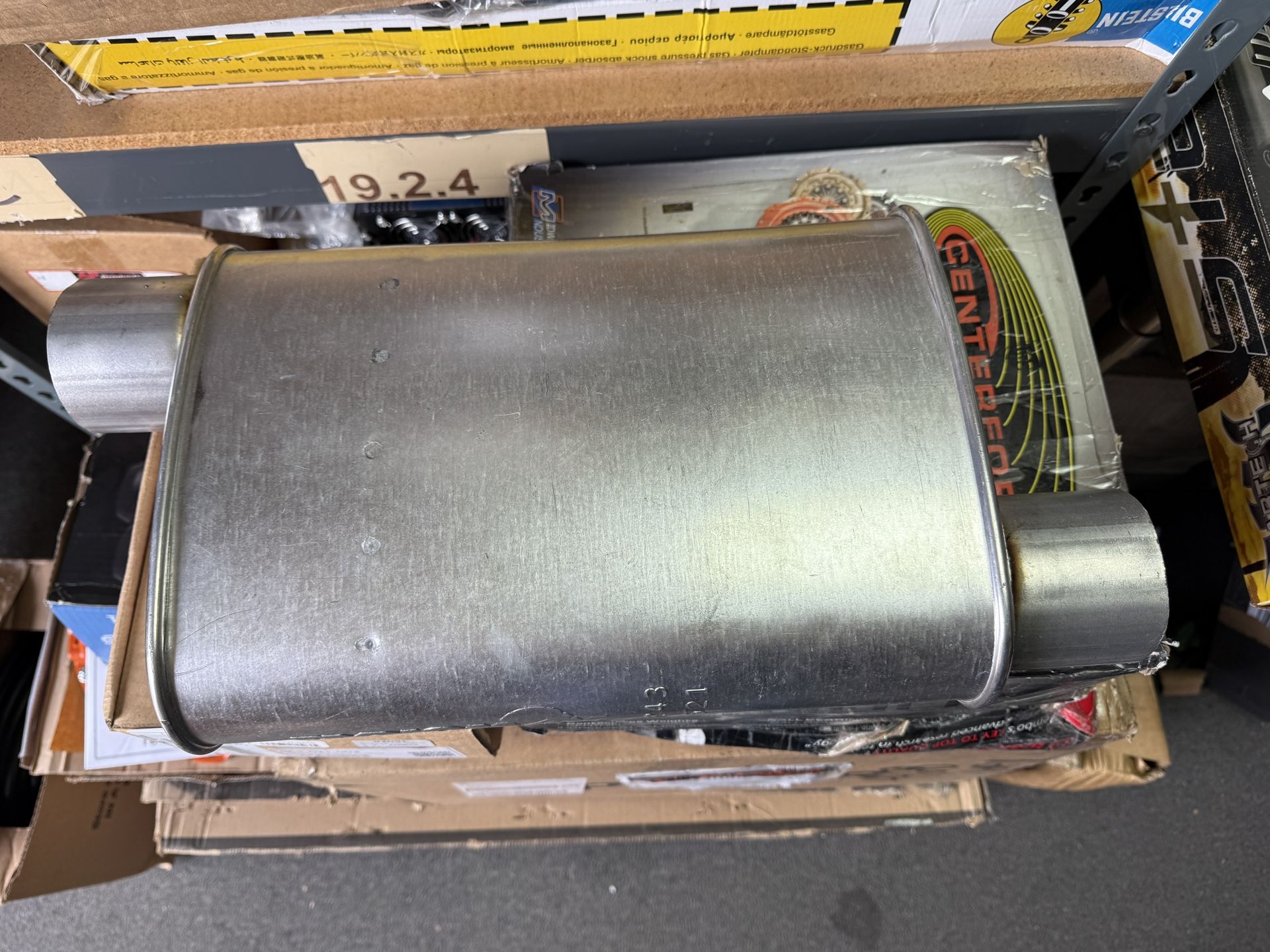 Dynomax 17743 Exhaust Muffler; Super Turbo; 9-3/4 Inch Length X 4-1/4 Inch Width Aluminized Steel Case; 3 Inch Offset Inlet; 3 Inch Offset Outlet; 14 Case Length/ 20 Overall Length