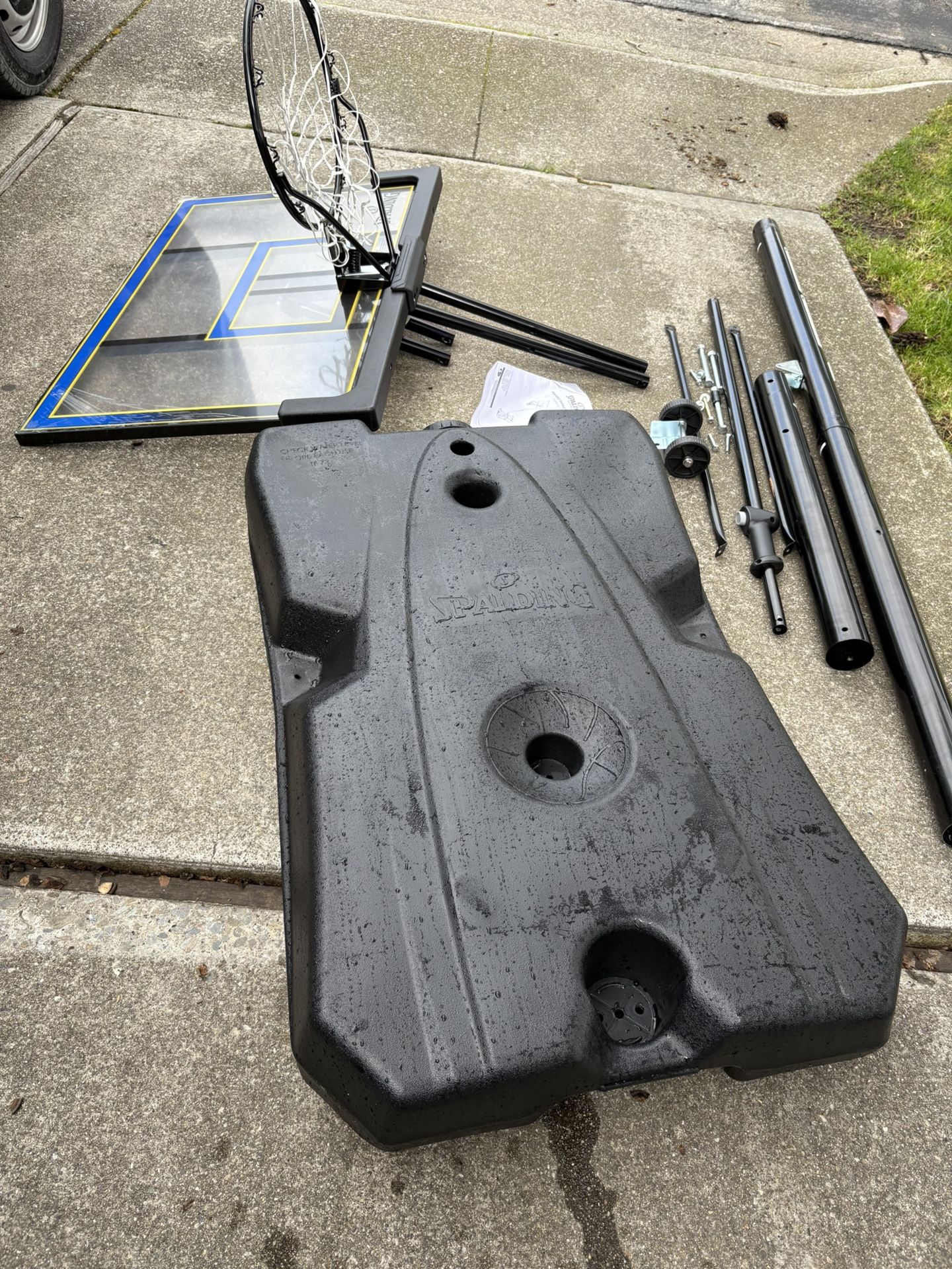 Barely used Spalding 8ft adjustable basketball hoop. Has a few scratches, all parts and manual included