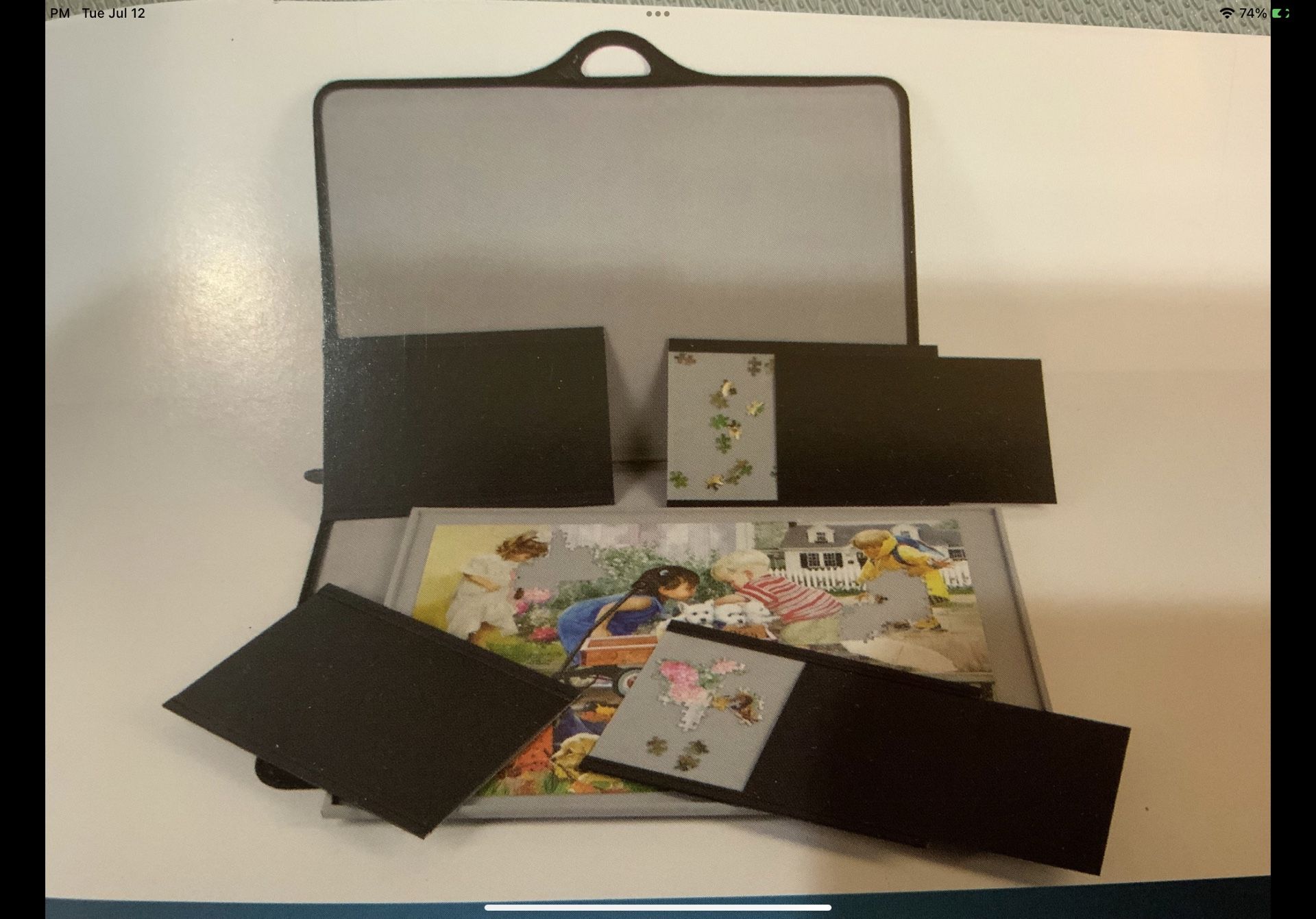 It appears to be new. By Jigthings. Includes lift out puzzle board. Suitable for puzzles up to 1500 pieces (36” x 26”). There is damage in the middle (see picture). The material separated. However, this does not affect its function. The lift out puzzle board has raised sides to keep the puzzle secure and allows you to easily move it to different locations. There are 4 sort trays that let you store the non- assembled pieces. Each comes with a cover to keep those pieces secure and prevent them from getting mixed up with the other pieces. The large storage case has 2 zippers that keeps everything contained snugly. Dimensions: 36.5” x 26.5” x 2”. Retails for $184.99. We are constantly posting new items and have hundreds of items for sale.