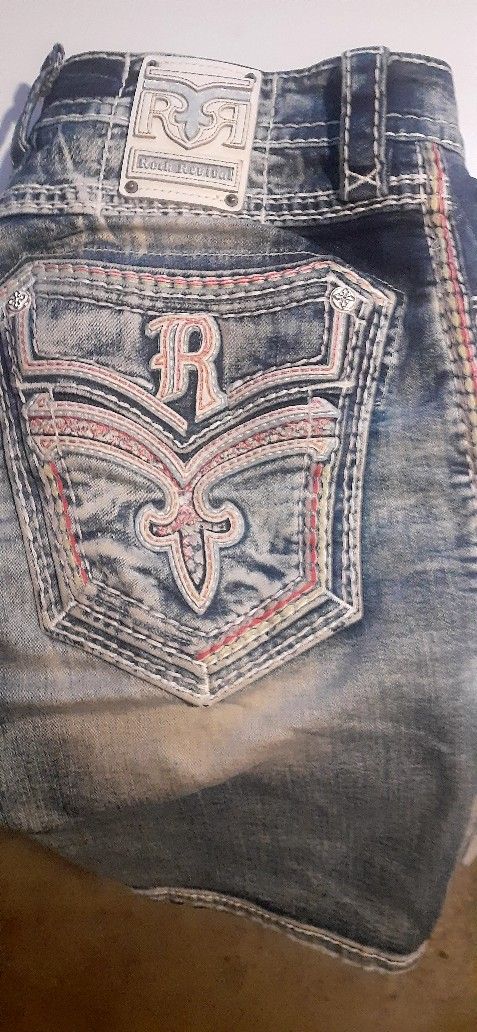 New Rock Revival Men's Designer jean shorts size 34 from the Buckle look great very nice stylish & comfy!! paid $150 selling for only $80