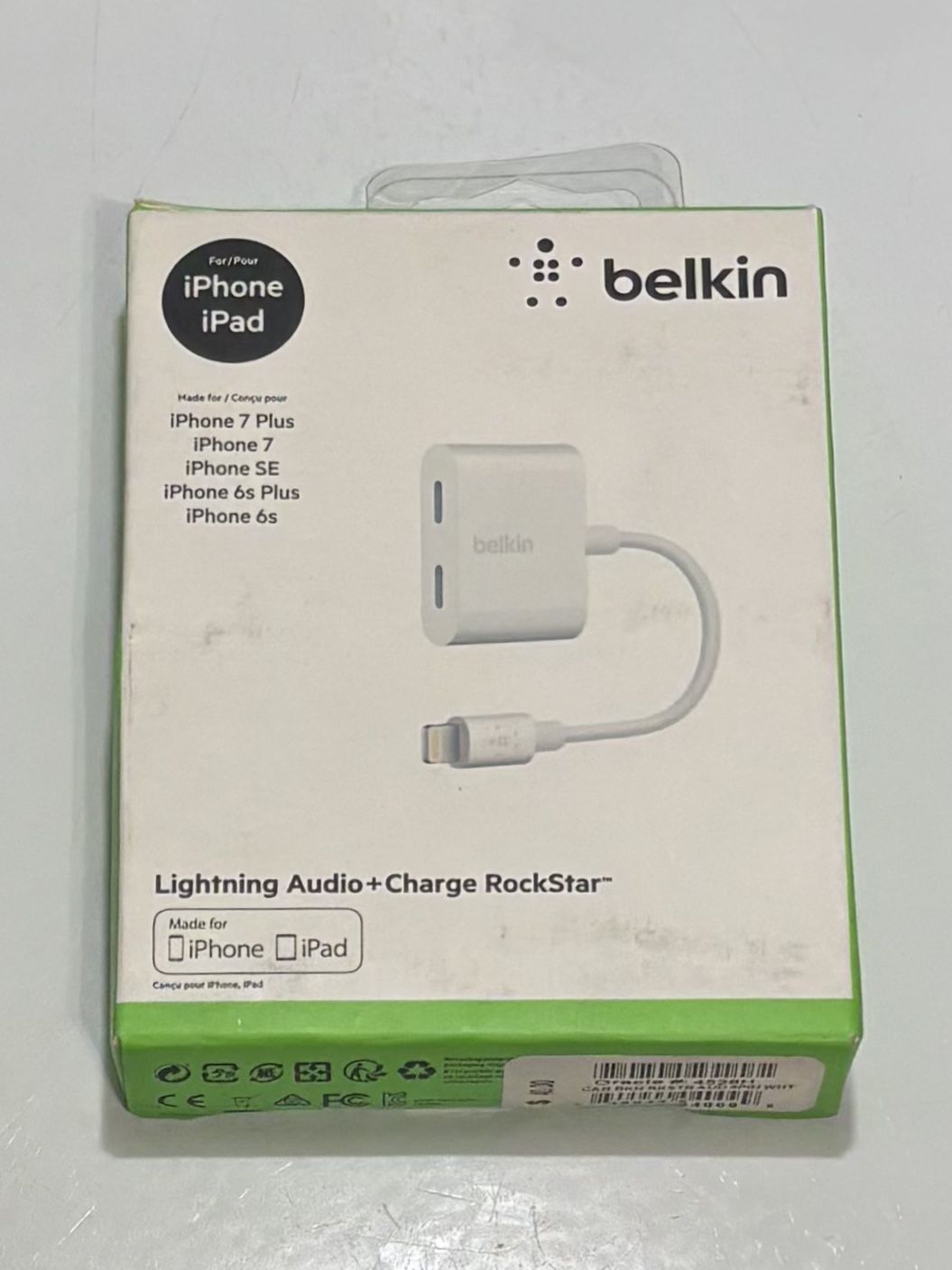 Listen to music and charge at the same time with the MFi Certified Belkin Lightning audio and Lightning Charge splitter. Plug in a Lightning equipped headphone and your lightning charger into the splitter and plug the splitter into your iPhone or iPad. In Used-like New condition $35 Cash