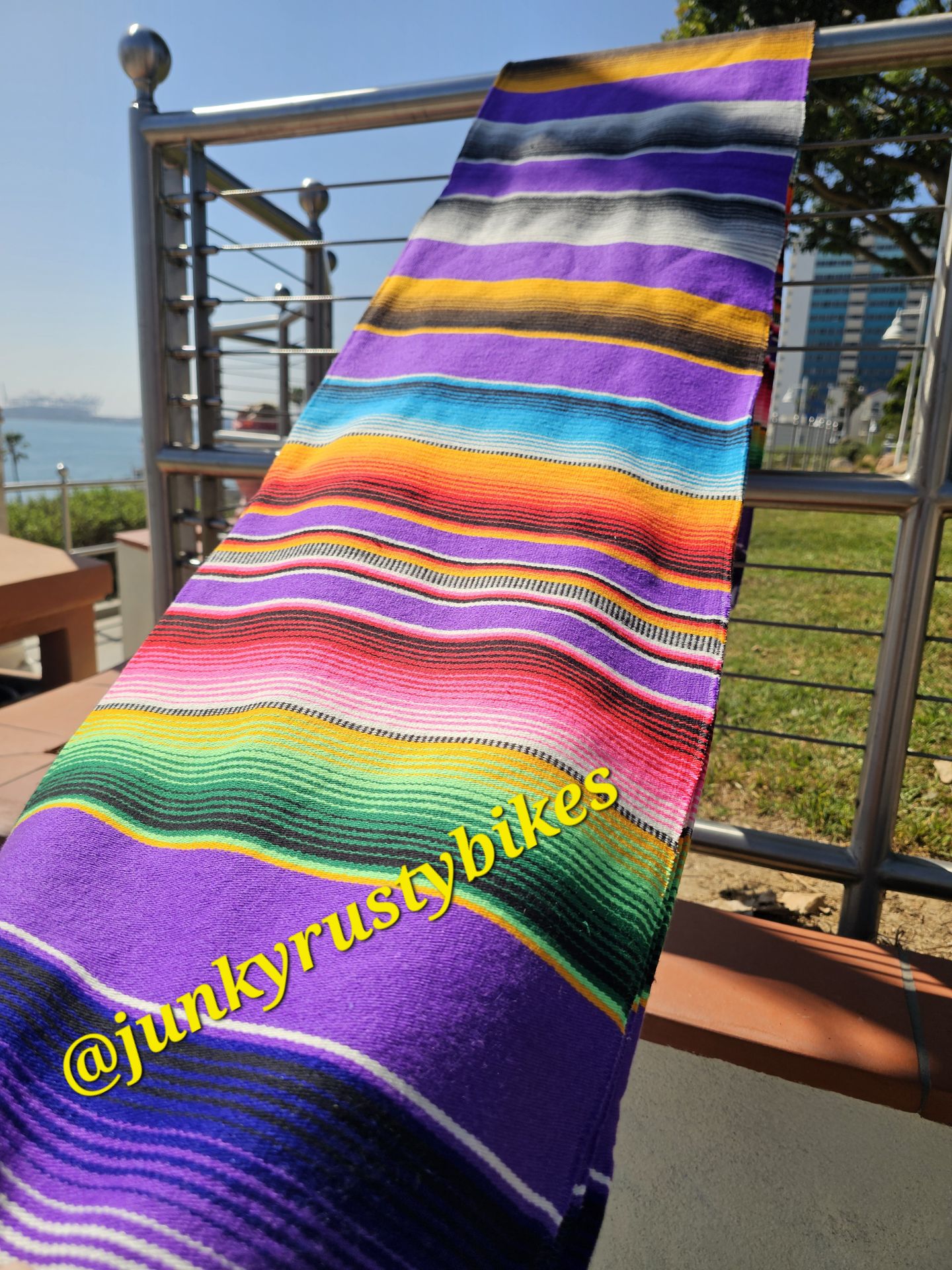 New 5x7 Serape Sarape Zarape Mexican Blanket just in $30.. for carseat cover. Couch cover. Grass. Sand. Harley Davidson motorcycle bedroll. Camping. Swapmeet. Display. Candy table. Taco stand. Tablecloth