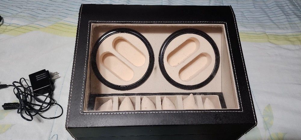 Very nice automatic watch winder ...hold up to 4 wathes to wind same times. Selling for 75 dolars... leather coated Maron