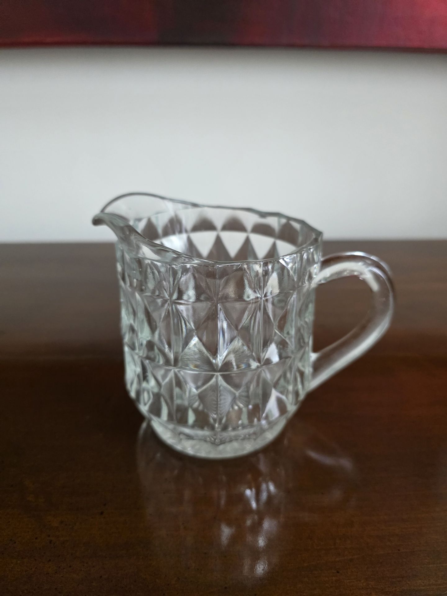 Jeannette Glass - Clear pressed glass pitcher in the 'Windsor Diamond' pattern by Jeannette Glass Company