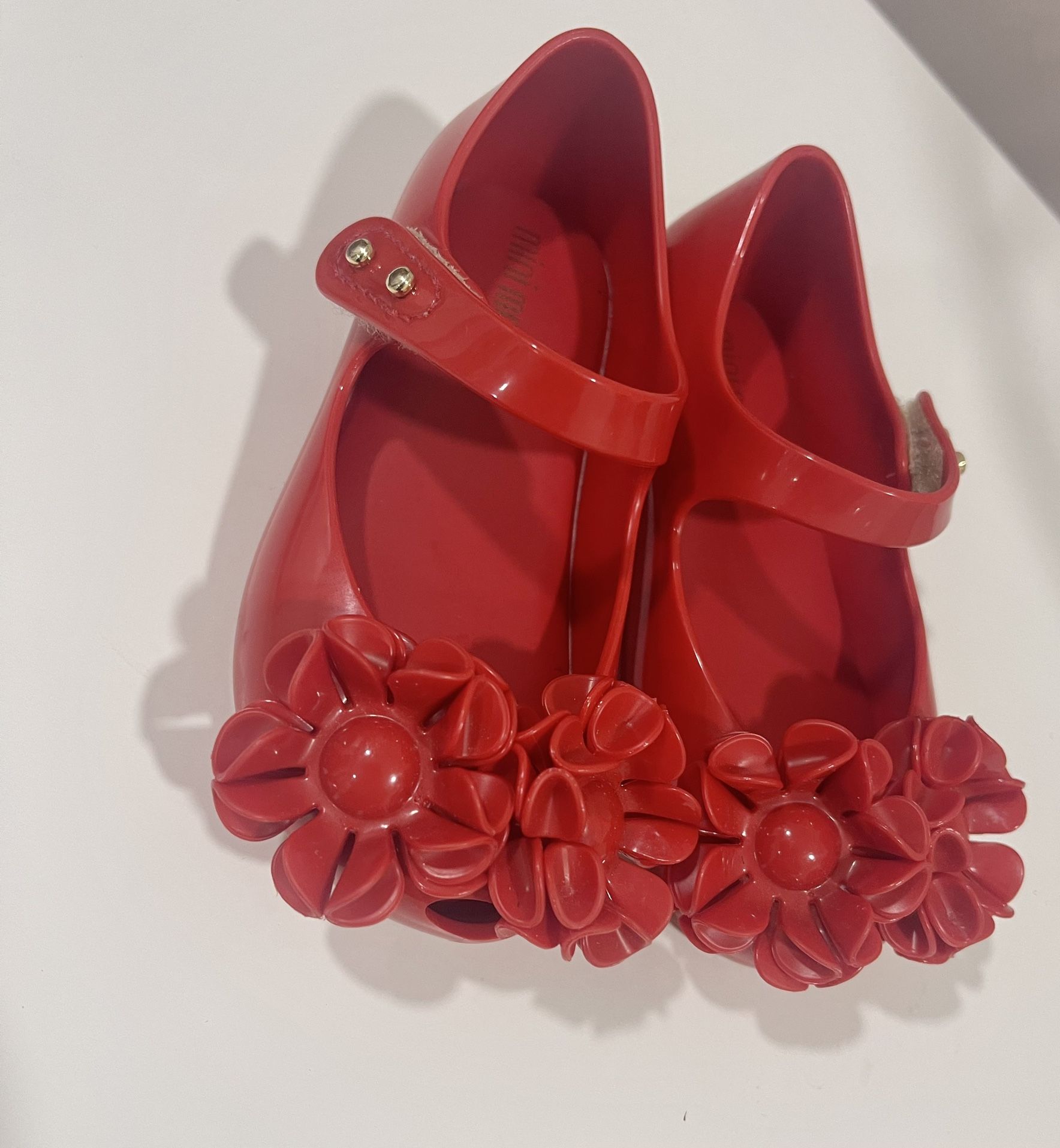 Red mini melissa Ultragirl Collection Mary Jane Flats for Toddler Size 7. Comfortable & Cute Peep Toe Jelly Flat Shoes