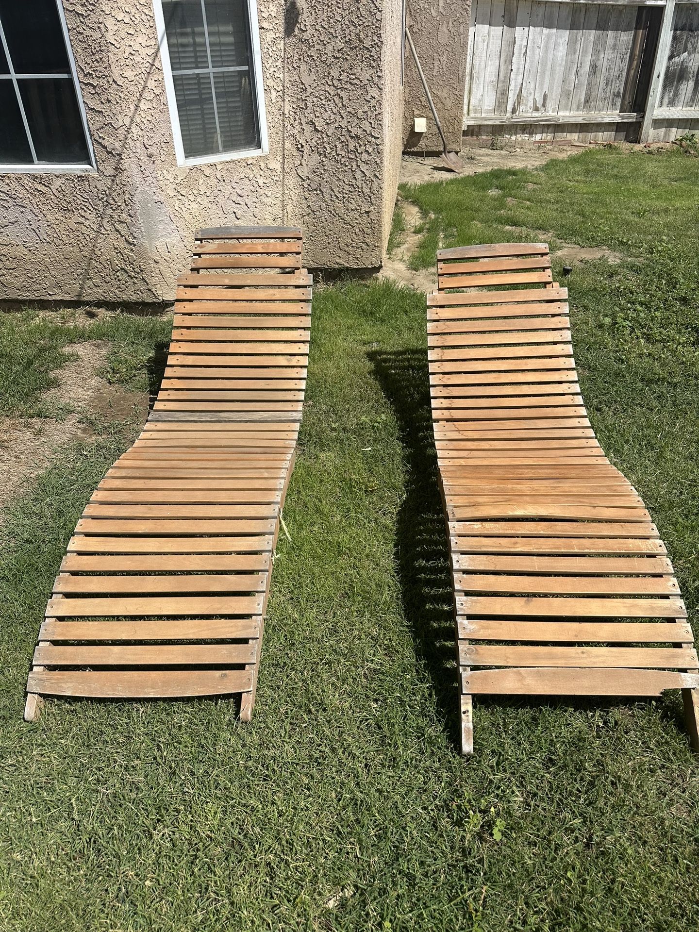 Selling these warm and inviting outdoor relaxation gorgeous pair of chaise lounges. These lounge chairs are a natural and charming addition to your outdoor space. Great for pool lounging or just sunbathing. They are also foldable for easy storage. $120 for both or best offer.