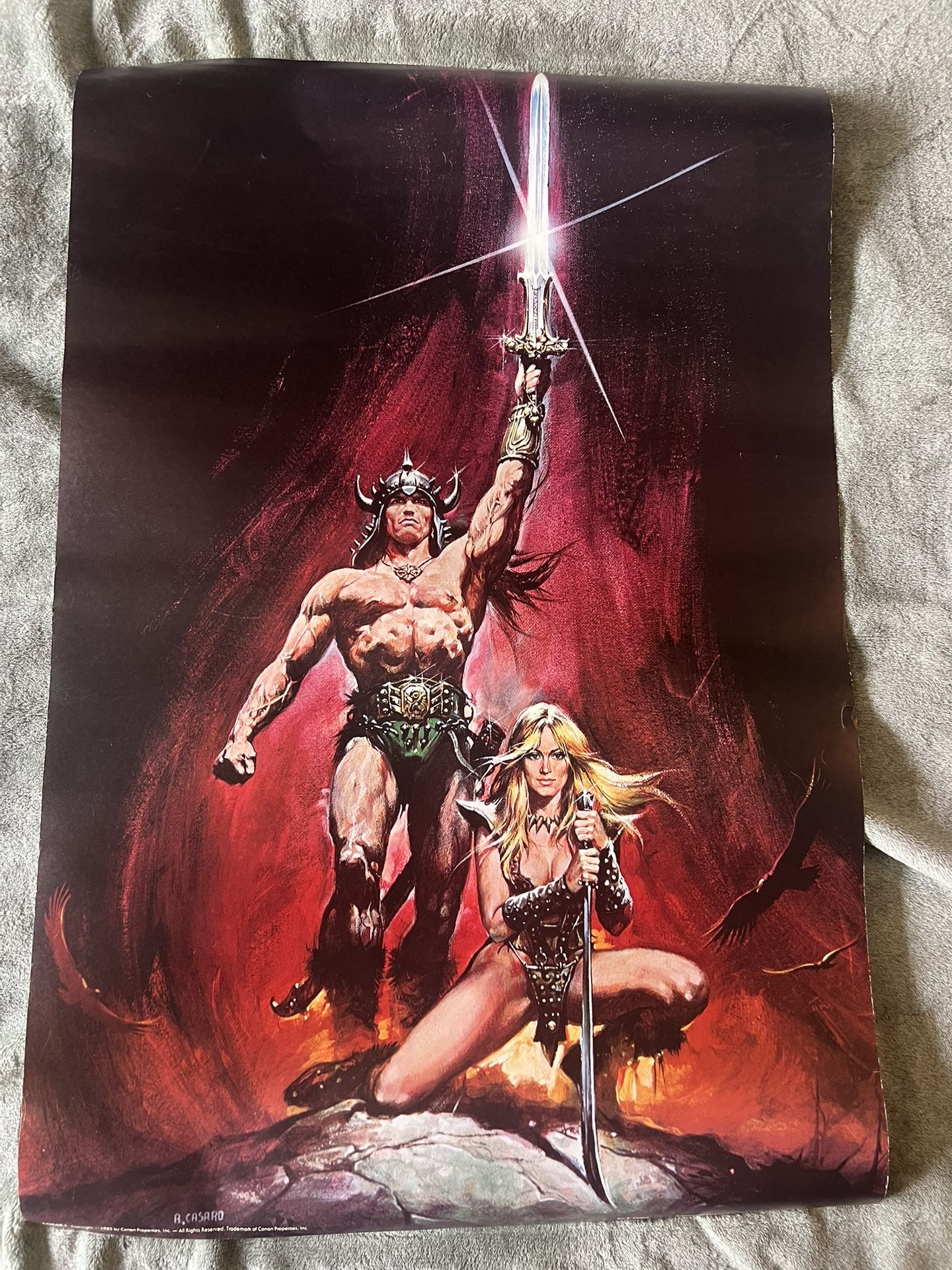 Vtg 1982 CONAN THE BARBARIAN Movie Poster 23x34 SCHWARZENEGGER Fantasy R. CASARO