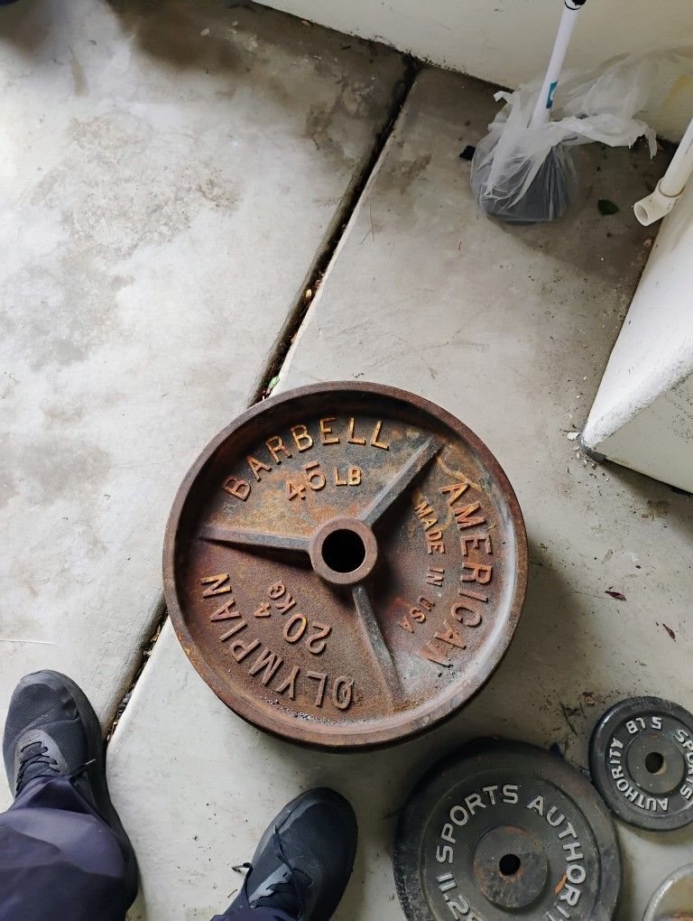 3- 45barbell plates 1 -25 1-10 - 3 small platesi have a bench extra 50 bucks