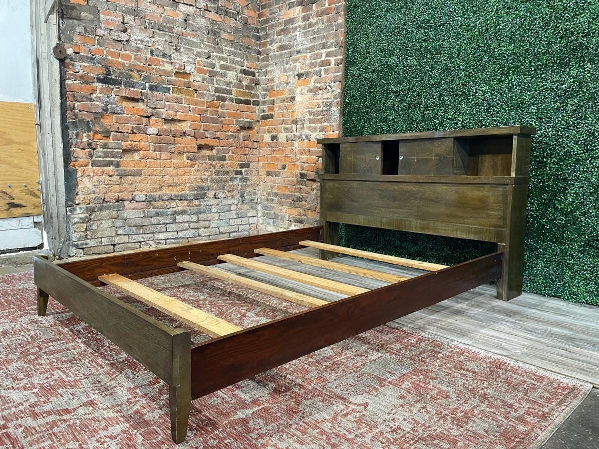 I can deliver this for free (rain or shine with an enclosed trailer) if you live within 25 miles or so of Centerville Ohio. Call or text for details. (contact info removed) This vintage wooden full bed is in good shape, it’s very clean and it’s very sturdy. The headboard has room for storage and doors that slide side to side. No trades…cash, CashApp or private Venmo only.