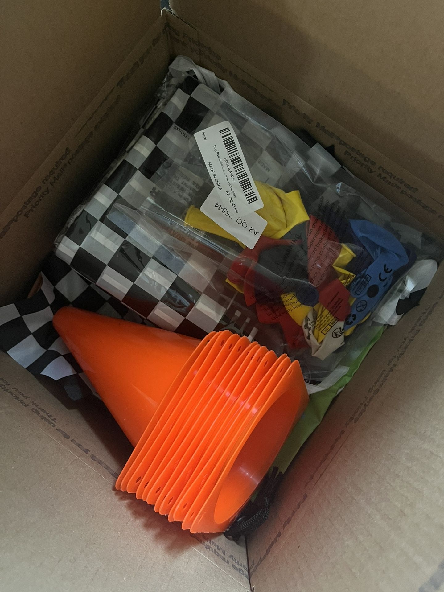 RACE CAR / dog Party pack 2 checkered table cloths String of checkered flags 10 traffic cones 8 party bags 6 flags *more stuff added…