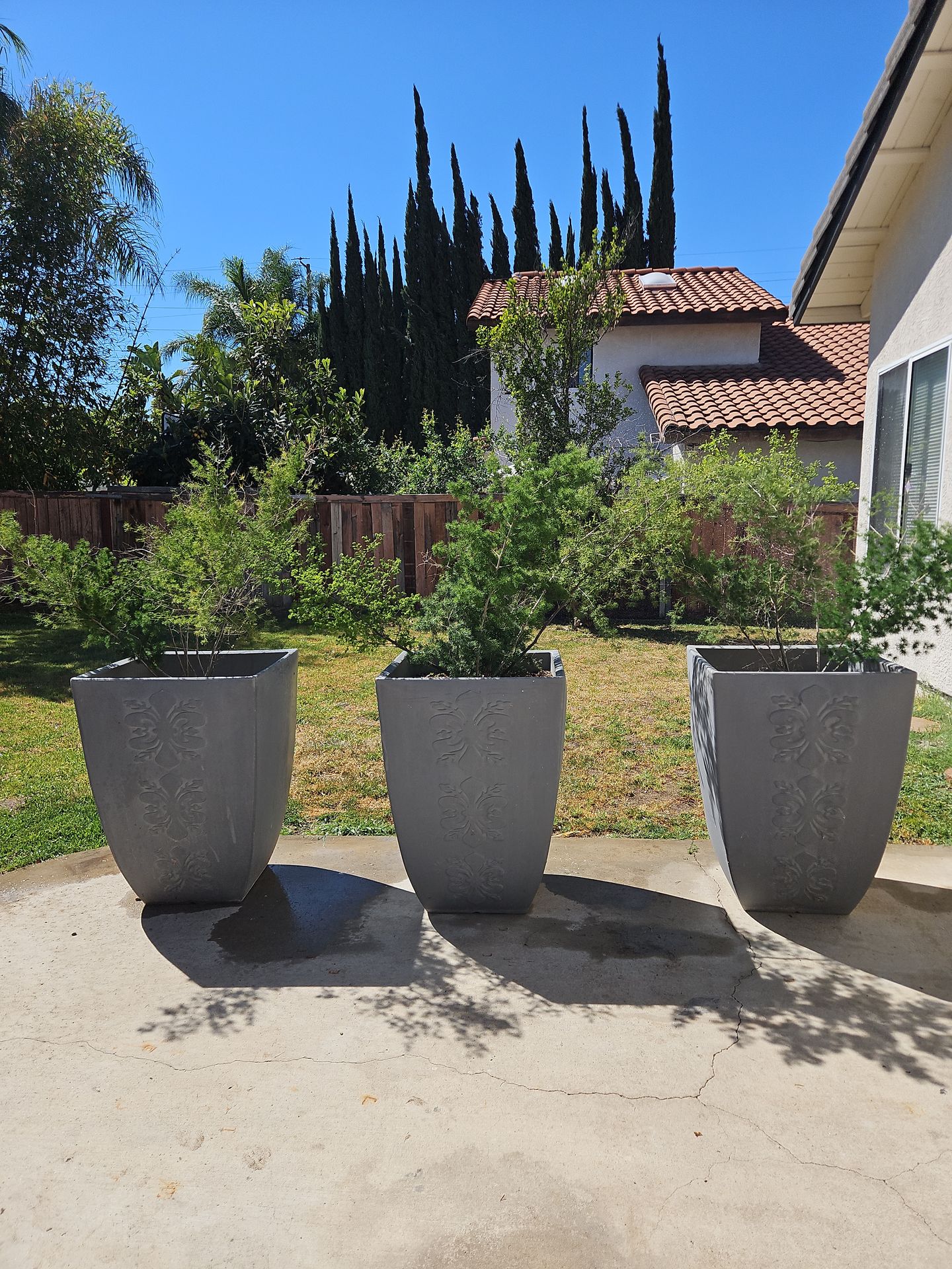 3 pots with ming asparagus Pots are plastic. Very sturdy there not very heavy i dont have them filled with alot of soil 40 each Or 110 for all three Price is the same with or without plants Height 281/2 Width 201/2 Redlands 92374