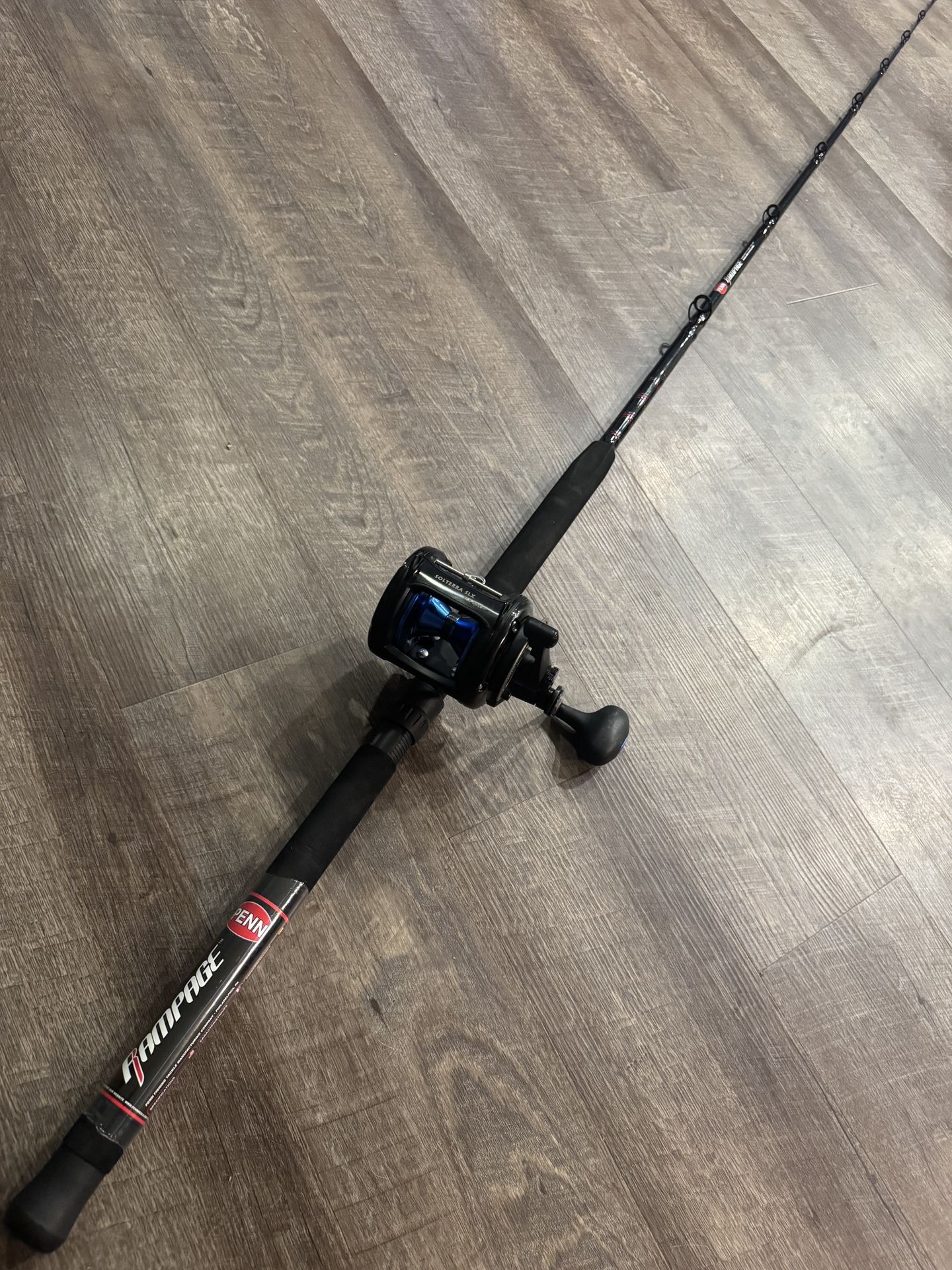 Brand New Salt Water Tuna Okuma Level Wind Lever Drag Penn Fishing Combo.