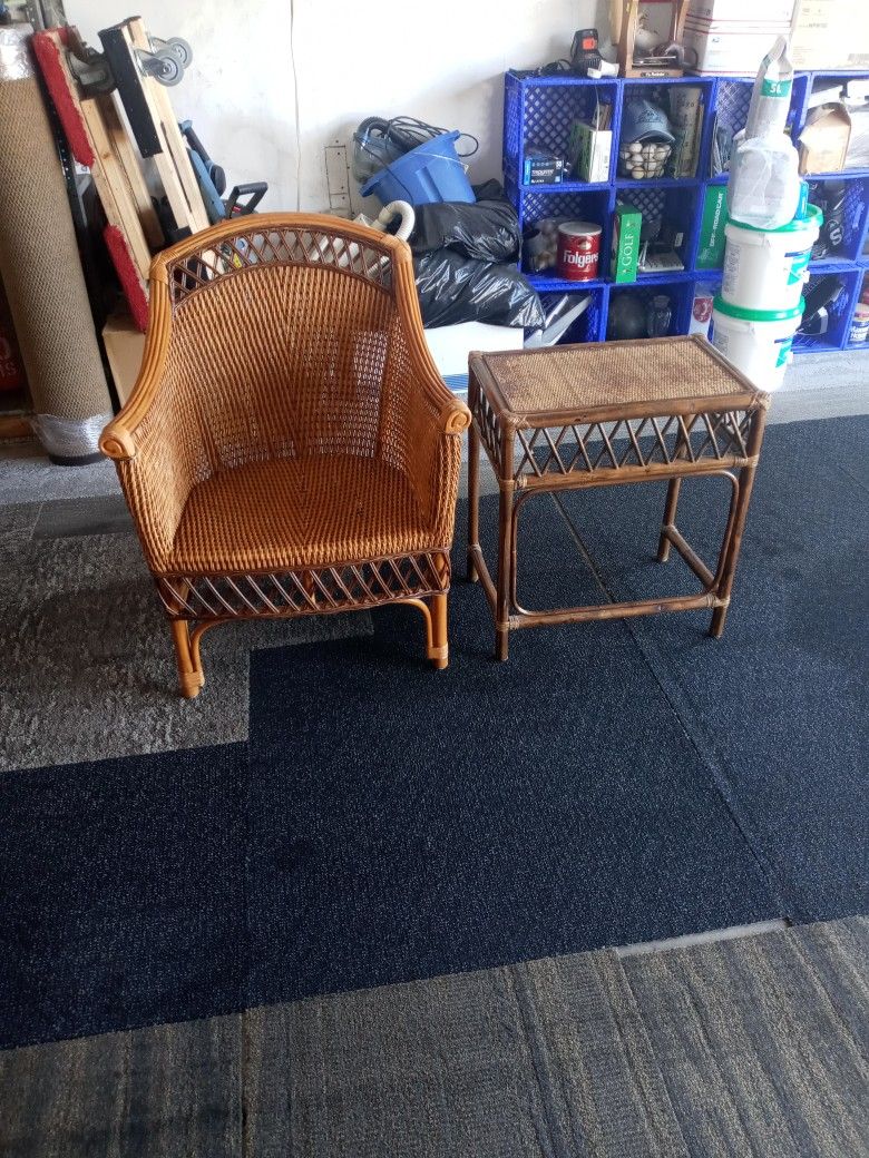 VINTAGE PALECEK WICKER CHAIR AND END TABLE