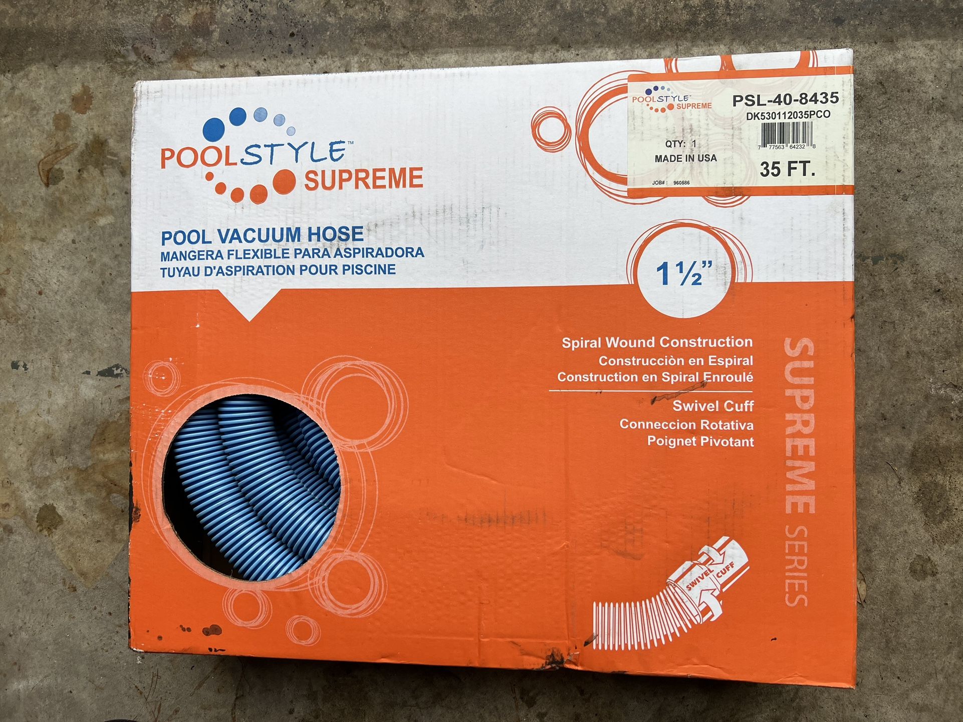 Here is a “new in the box” 1 and 1/2 inch flexible pool vacuum hose that is 35 feet long. This is MSRP of $100 that you can save money on. Ad will go away when sold. Thanks for looking.