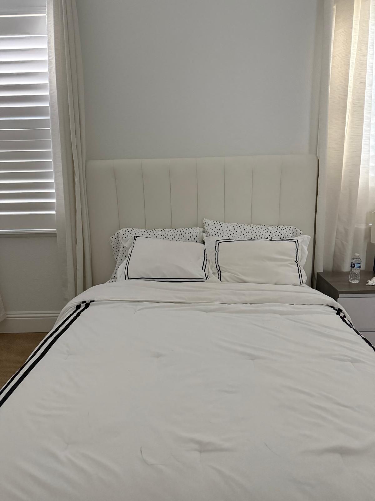 Mattress can be included for 250 Mattress is from the brand Rest & Renew and has cooling technology memory foam. Total pair for Bed + Mattress will be priced at a 50% discount- so total will be $450. Beautiful modern upholstered bed frame from City Furniture, featuring a tall, padded headboard with vertical panel detailing and a clean, neutral fabric that works perfectly in modern, minimalist, or luxury bedrooms. The bed frame is sturdy, solid, and well-maintained, with no stains, tears, or structural issues. The upholstered headboard is comfortable for sitting up in bed and adds a high-end, hotel-style look to the room. ✔ Upholstered headboard & frame ✔ Neutral color that matches any décor ✔ Solid, stable construction ✔ Clean and well cared for ✔ Mattress not included (frame only) This bed has barely been used as it in my vacation home. Condition is close to brand new. Ready for immediate pickup. 📏 Size: Queen 📍 Local pickup only 💬 Message me if interested