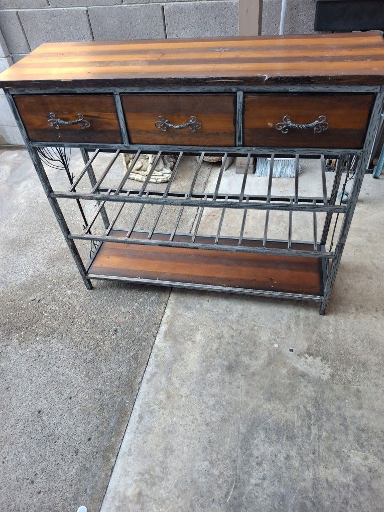 It can be sanded and painted if liked. It is real wood and metal. It has 3 drawers to store things in. Must pick up Cash only