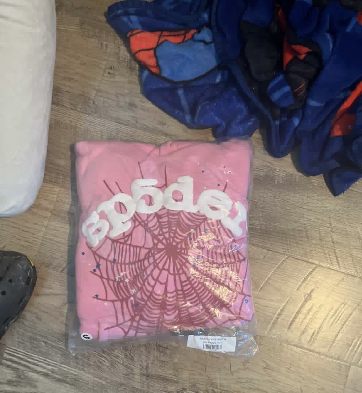 pink sp5der hoodie size small brand new not used it opend price NOT NEGOTIABLE