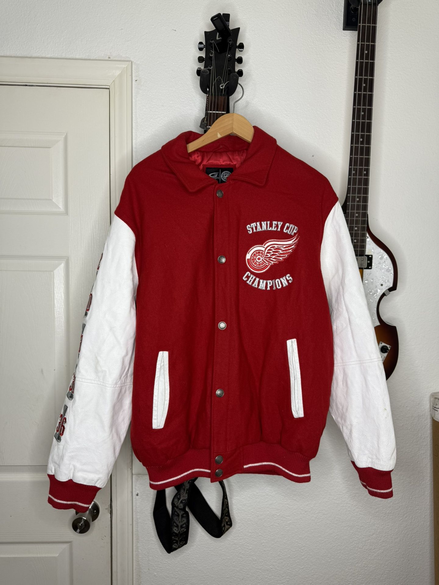 XL Vintage DETROIT RED WINGS 10X STANLEY CUP CHAMPIONS Mens Varsity Jacket G3