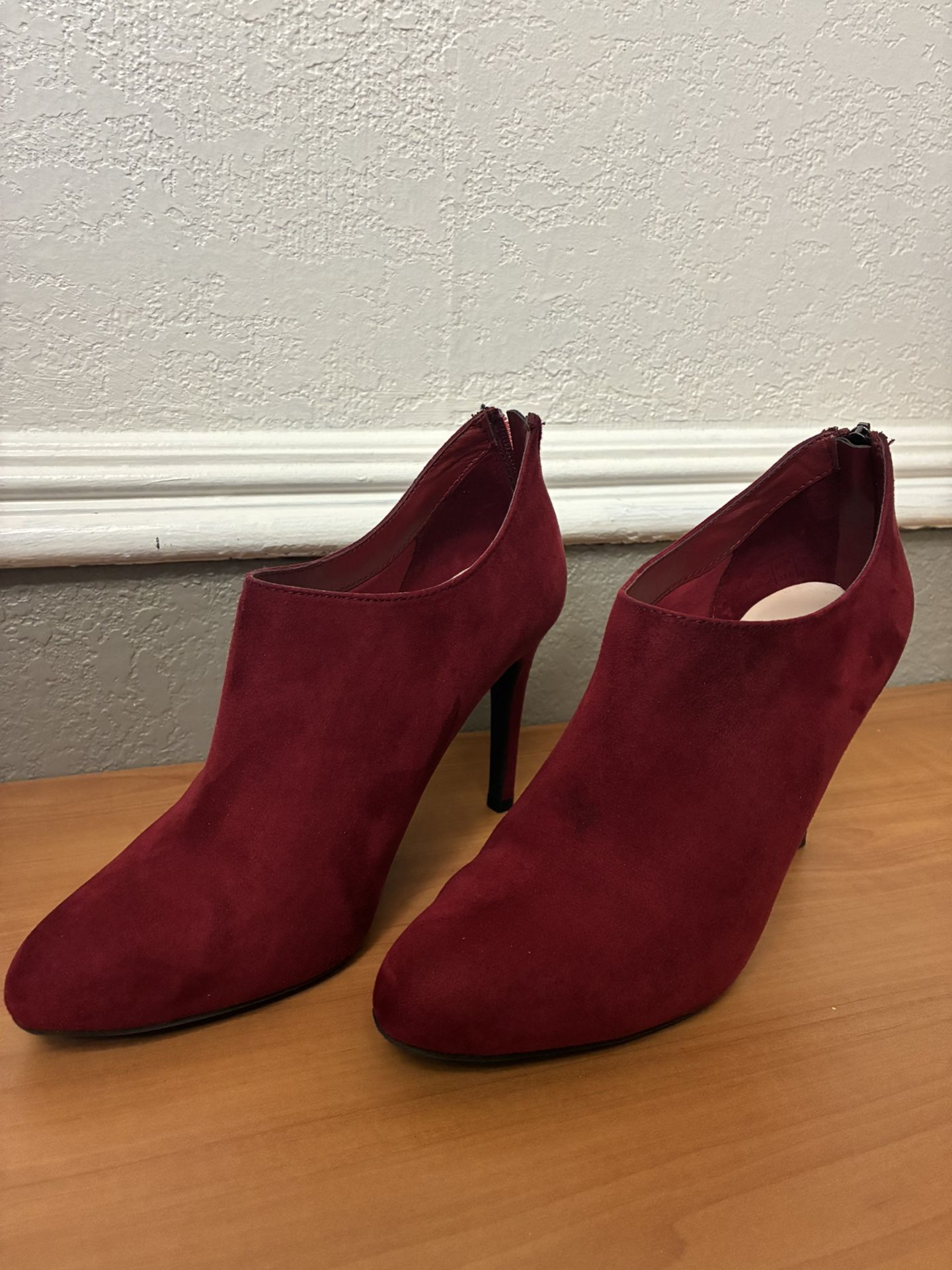 KELLY &KATIE Ankle ZIP Bootie Burgundy Suede High Heel 7