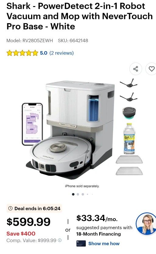 Shark PowerDetect 2-in-1 Robot Vacuum & Mop with NeverTouch Pro Self-Cleaning Base