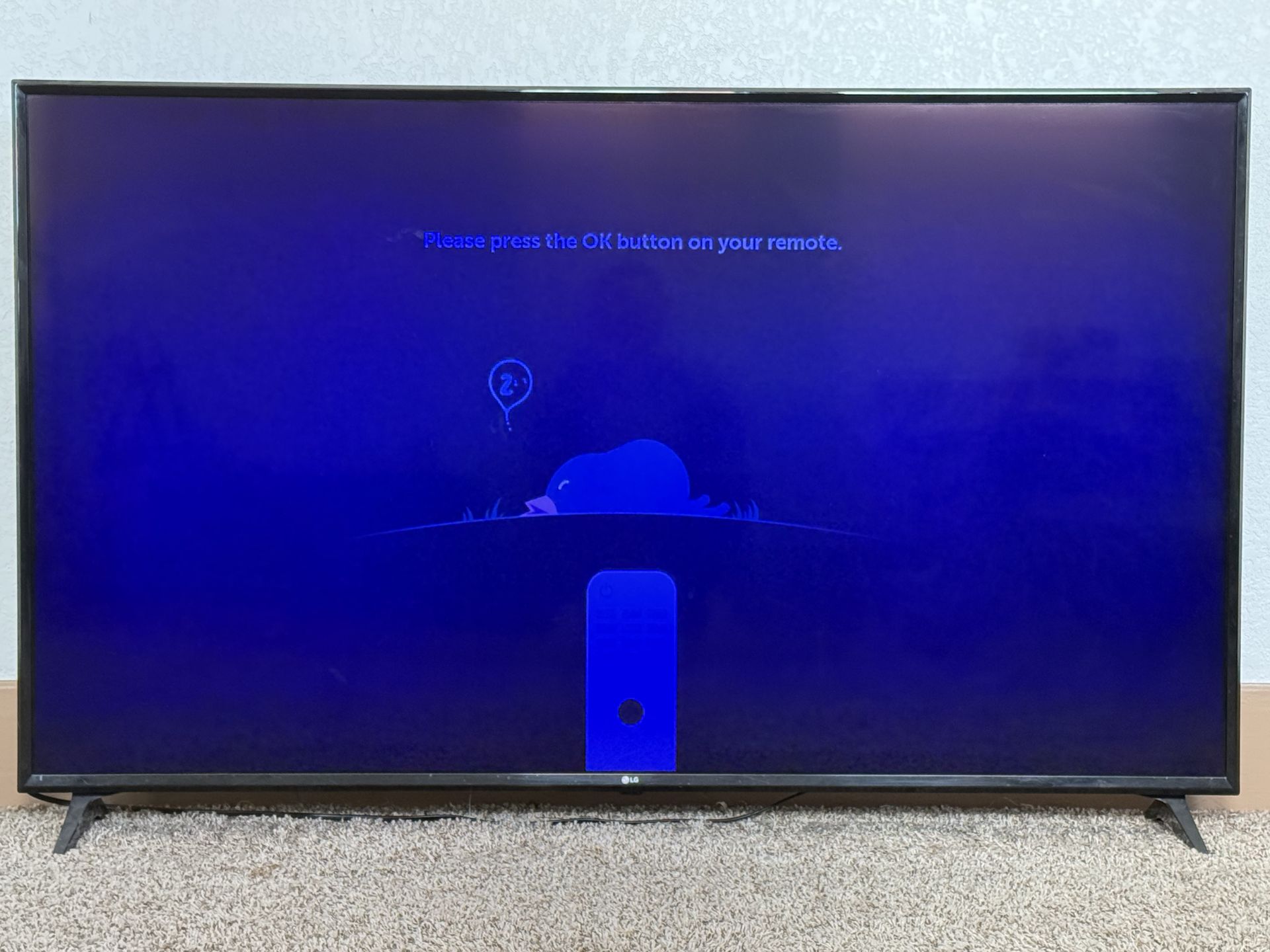 65” LG HDTV Screen works perfectly as well as everything else. Feet attached. Synced universal remote included.