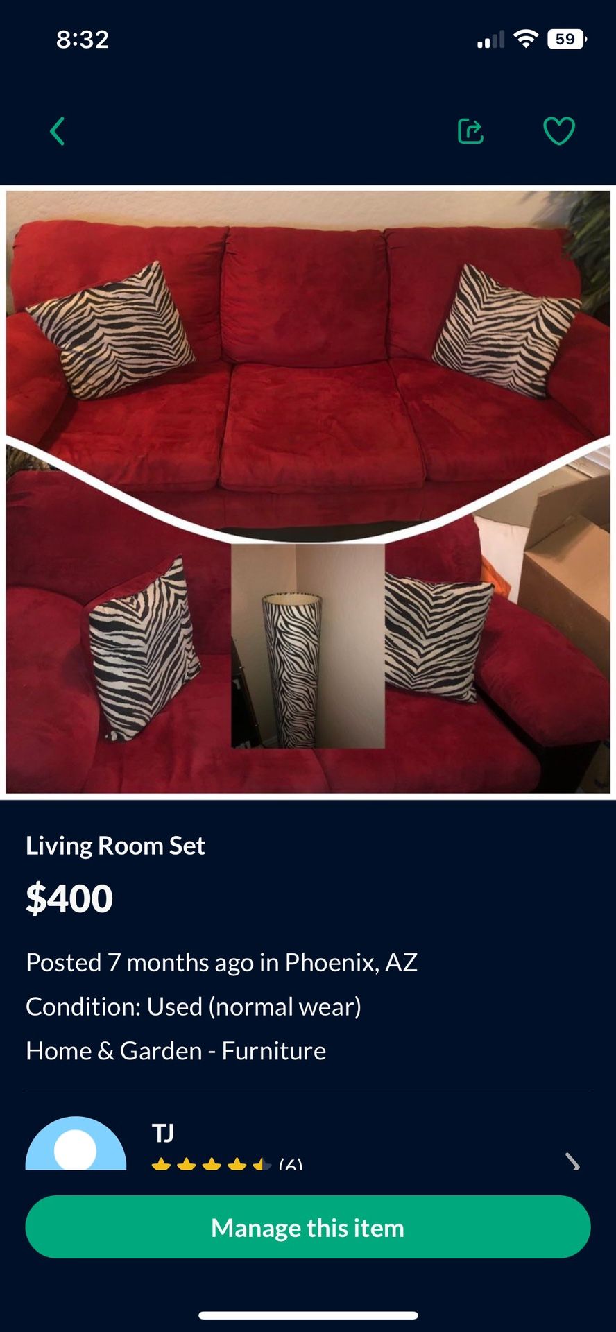 I have this set of couches along with a lamp and rug it would need to be cleaned due to it being in storage I’m asking for $300 for all.