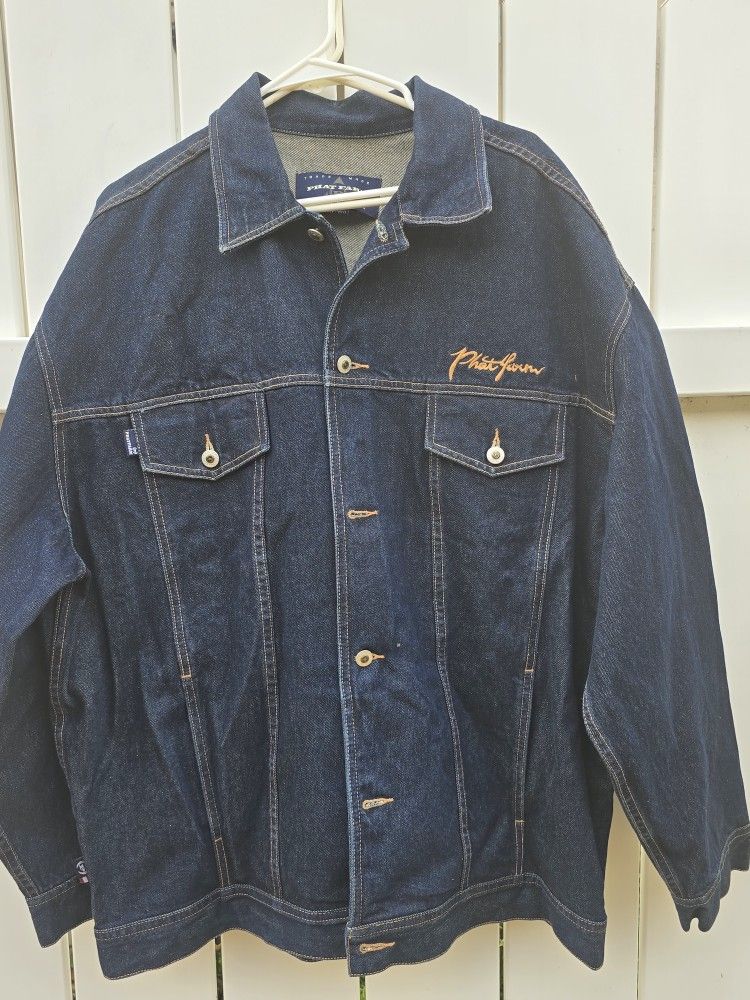 Phat Farm ,Jean jacket,new no tickect,dark blue,bottons in front ,2 packets in upper front with slap bottons 2 packets on the bottom ,xxxl size Local sale,serius buyers,cash only.