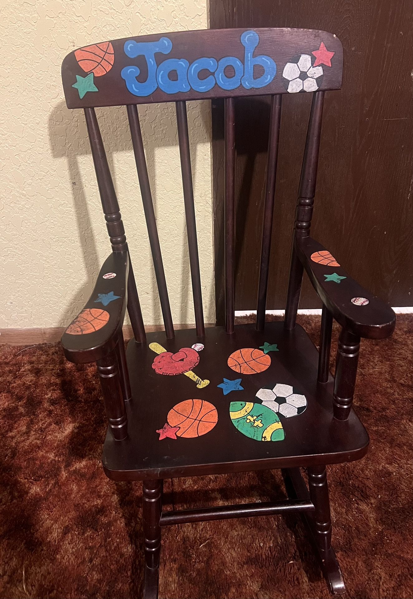 This chair would be perfect for a little boy with the name Jacob or you could paint it and turn it into a girls chair. Its in very good condition! It can be enjoyed by kids 2+ π