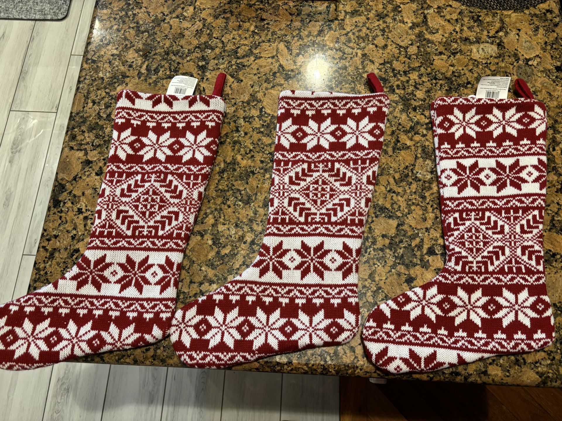 Selling 3 Christmas stockings. 2 of them are brand new, the third one is in excellent condition with a tag removed. They come from smoke free household . $25 for all three.