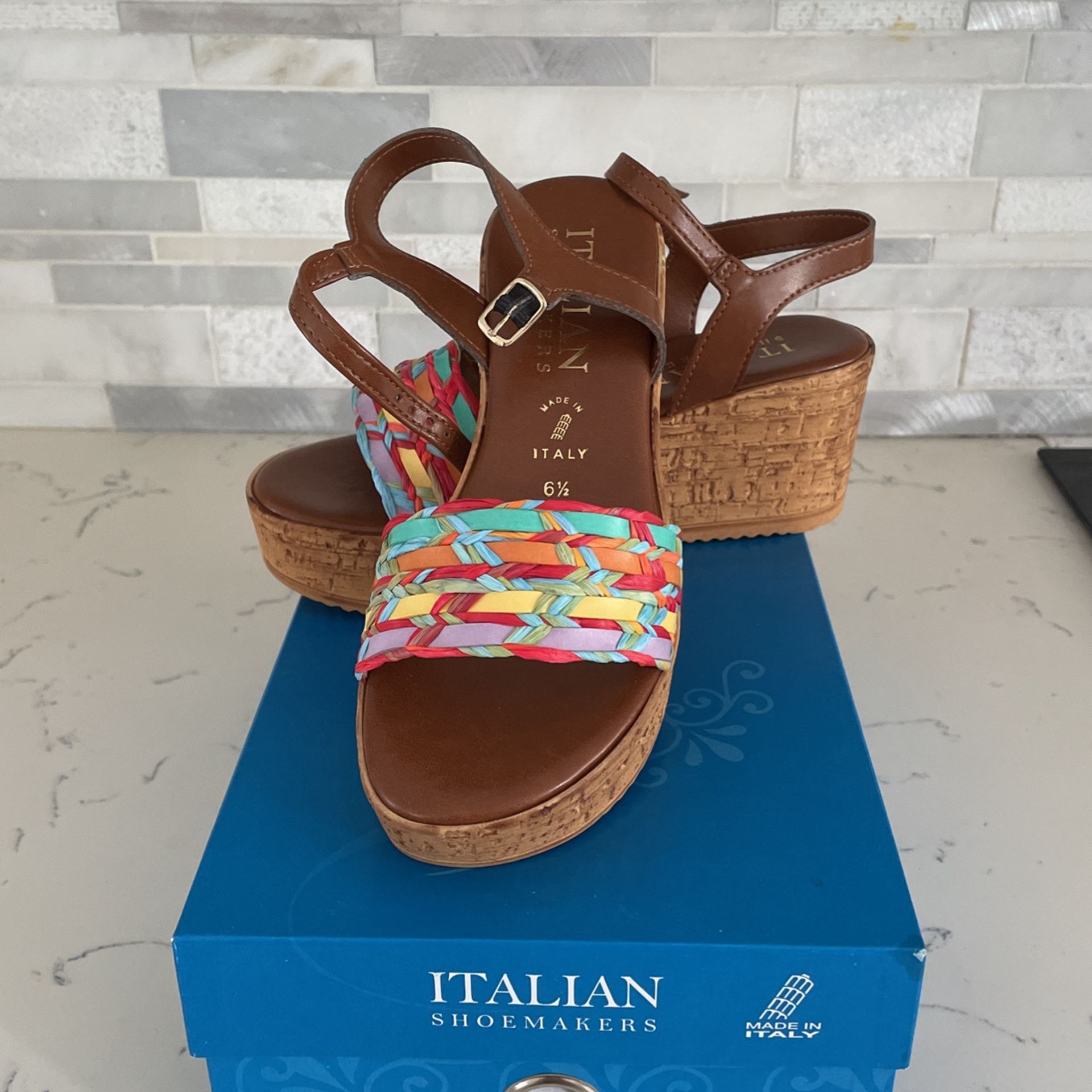 Confortable pair of women shoes - Italian leather - wedge - beautiful colors - very comfortable - new - never worn. Received as a gift but not the right size for me .