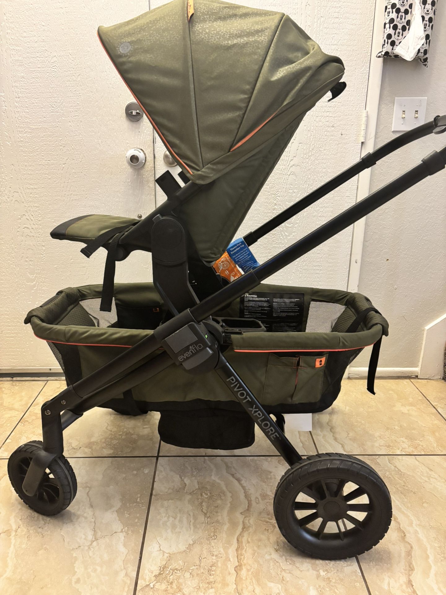 This is a really good double stroller that turns into a wagon the infant seat reclines, it’s in perfect condition I have the canopy’s for the wagon and the bar for the top seat also comes with a basket, located in Ontario across from colony high school