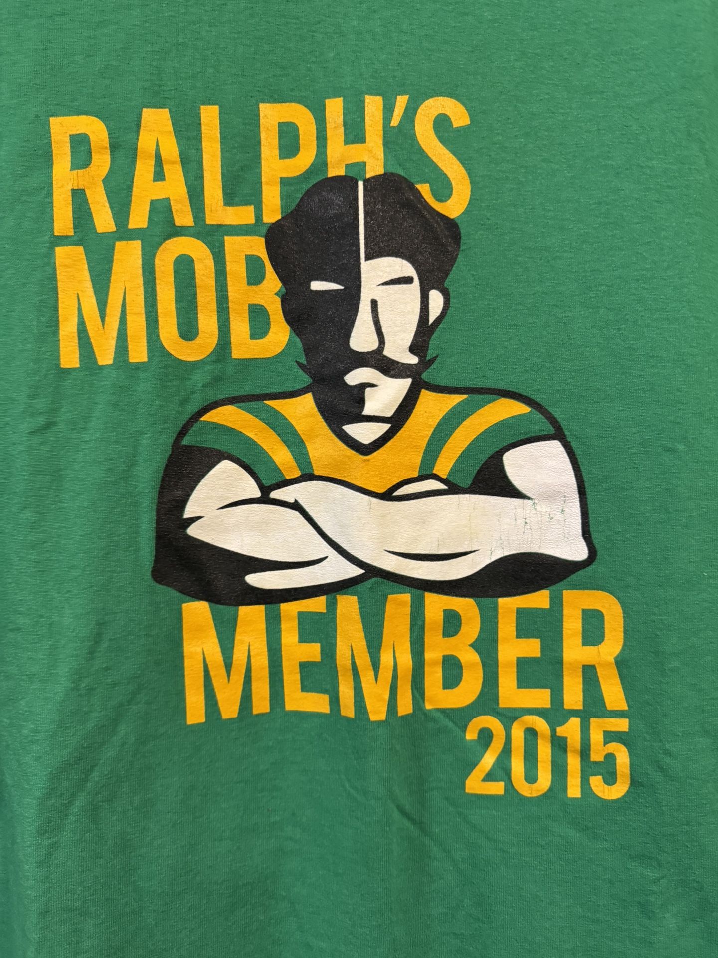 2XL commemorative Ralph’s Mob T-shirt 2015 season. 50% cotton/ 50% polyester. Gently used!