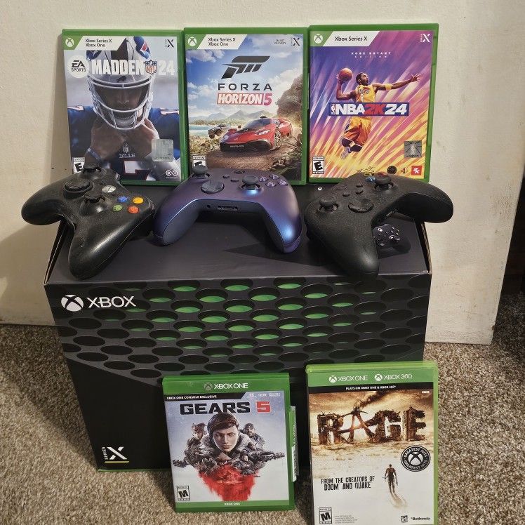 GAME CONSOLE + 3 CONTROLLERS AND 5 XBOX ONE GAMES WITH ALL NECESSARY ACCESSORIES INCLUDED! RARELY USED.