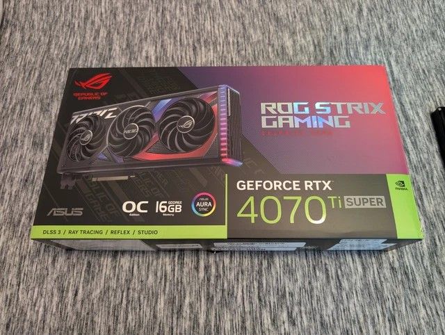 ROG STRIX GeForce RTX 4070 Ti SUPER O16G-GAMING used for Gaming in Best working condition.. Graphics card type Desktop graphics card Chip model NVIDIA GeForce RTX 4070 Ti SUPER Chip factory side NVIDIA Output interface 1× HDMI port, 3× Display Port interface Performance parameters Video memory capacity 16GB The type of video memory GDDR6X The memory bit width 256bit 3D API DirectX 12 Ultimate Maximum resolution 7680×4320 Other parameters Power connector 16 Pin Board size 336×150×63mm Local meet up available in person today.. Will be shipped out today immediately after payment is received.. Via UPS 2-3 days shipping..