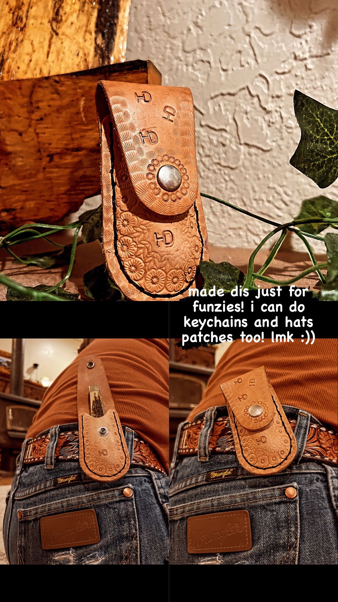 I can do custom keychains,knife sheiths, leatherman cases, dog collars and more! Shoot me a message if you want more pictures of my works and or to order so i can send you a sketch up before you pay! keychains start at 25$ knife sheiths at 55$ leather man cases at 80$ and dog collars at 60$