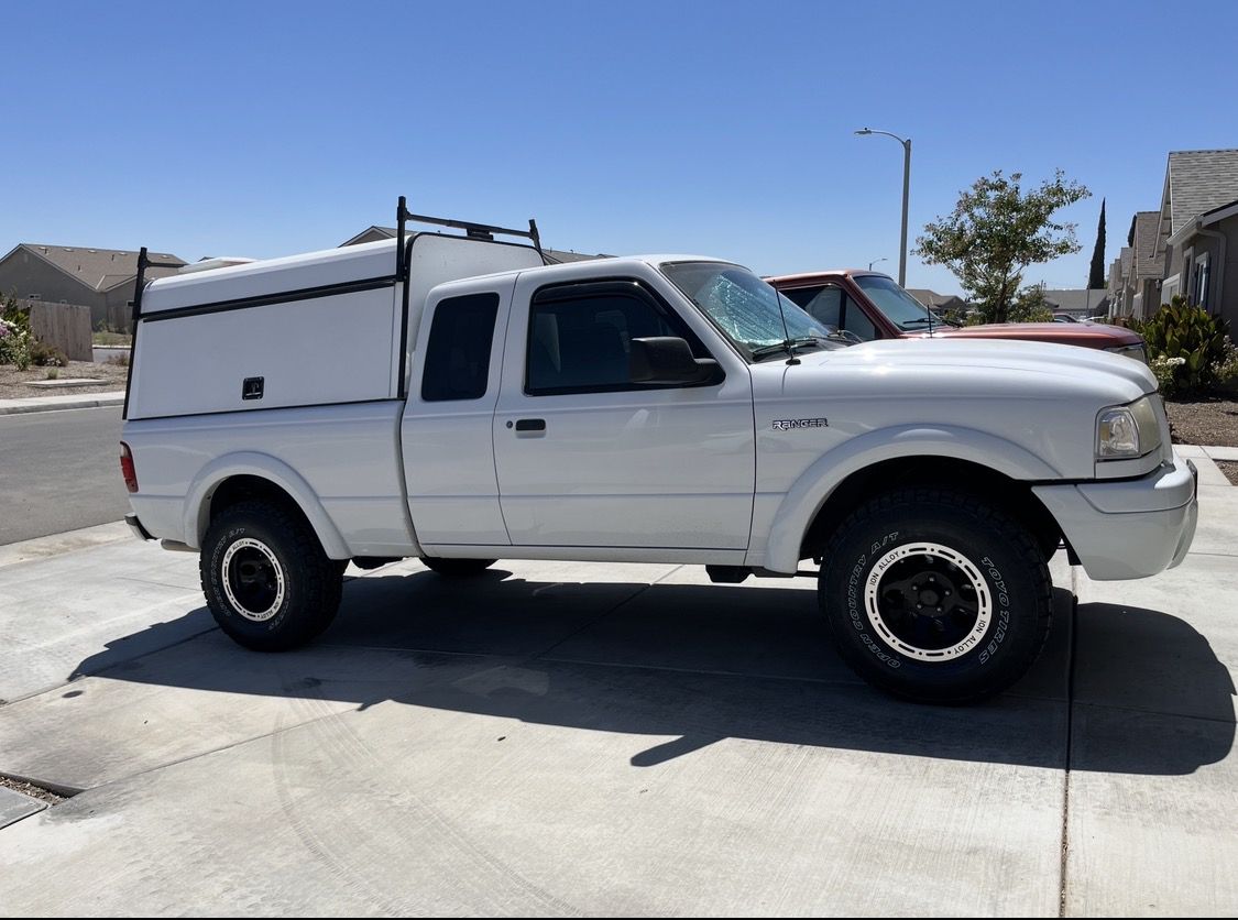 2003 Ford Ranger XLT 4x4 with a NEW motor tires have 5,000 miles on them K&n cold air intake w/ magnaflow exhaust v6 4.0 L Jaspers Crates Motor with under 20,000 miles on it ( installed by Worleys ) Has a rebuilt rear axel with a LSD and new rear drum brakes Comes with camper (break light and LED lights hooked up) and wooden shelve/drawer Camper and wood can get taken off/out if wanted This truck has had a lot more work done, message me for the full list if you’re interested, make an offer. Selling to upgrade to a bigger trucks