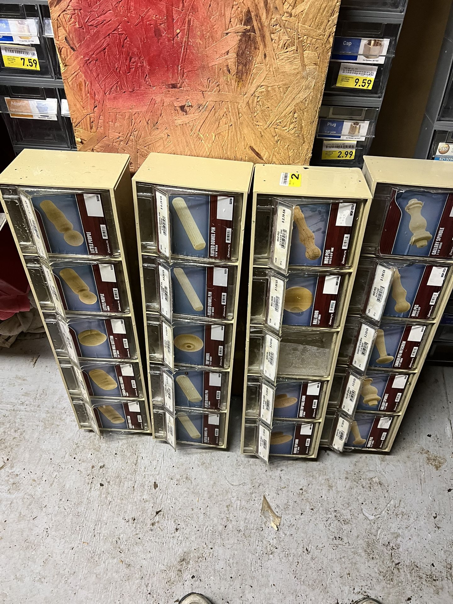 industrial hardware storage cabinets with individual bins.