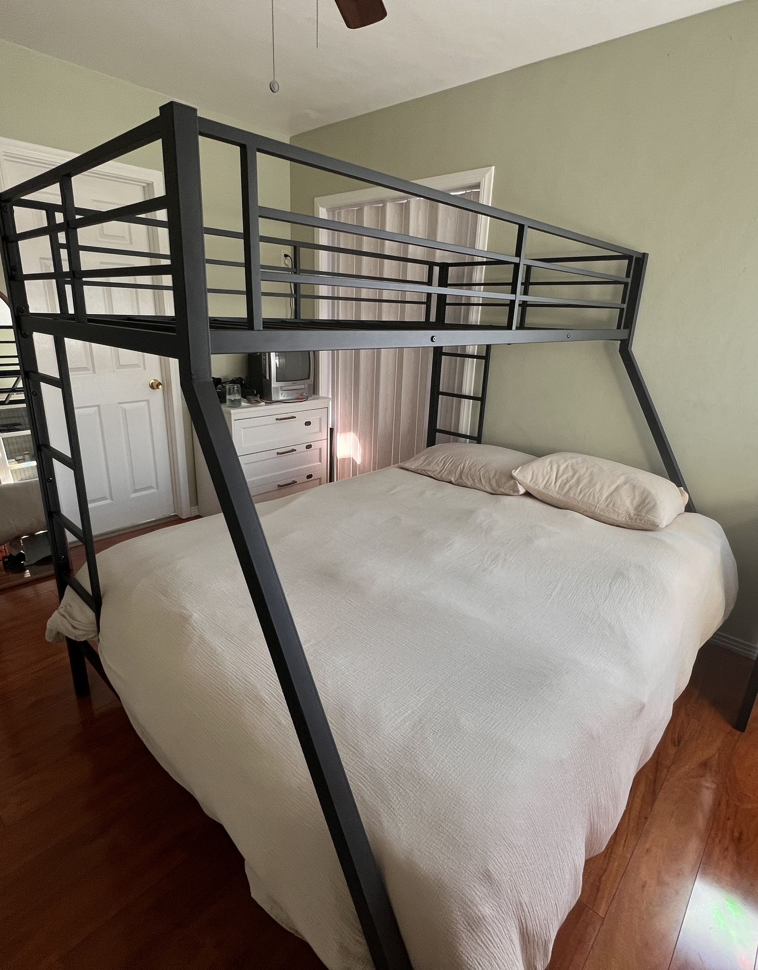 Twin Xl over Queen metal bed frame only, mattress not included. Disassembled and ready for pick up.