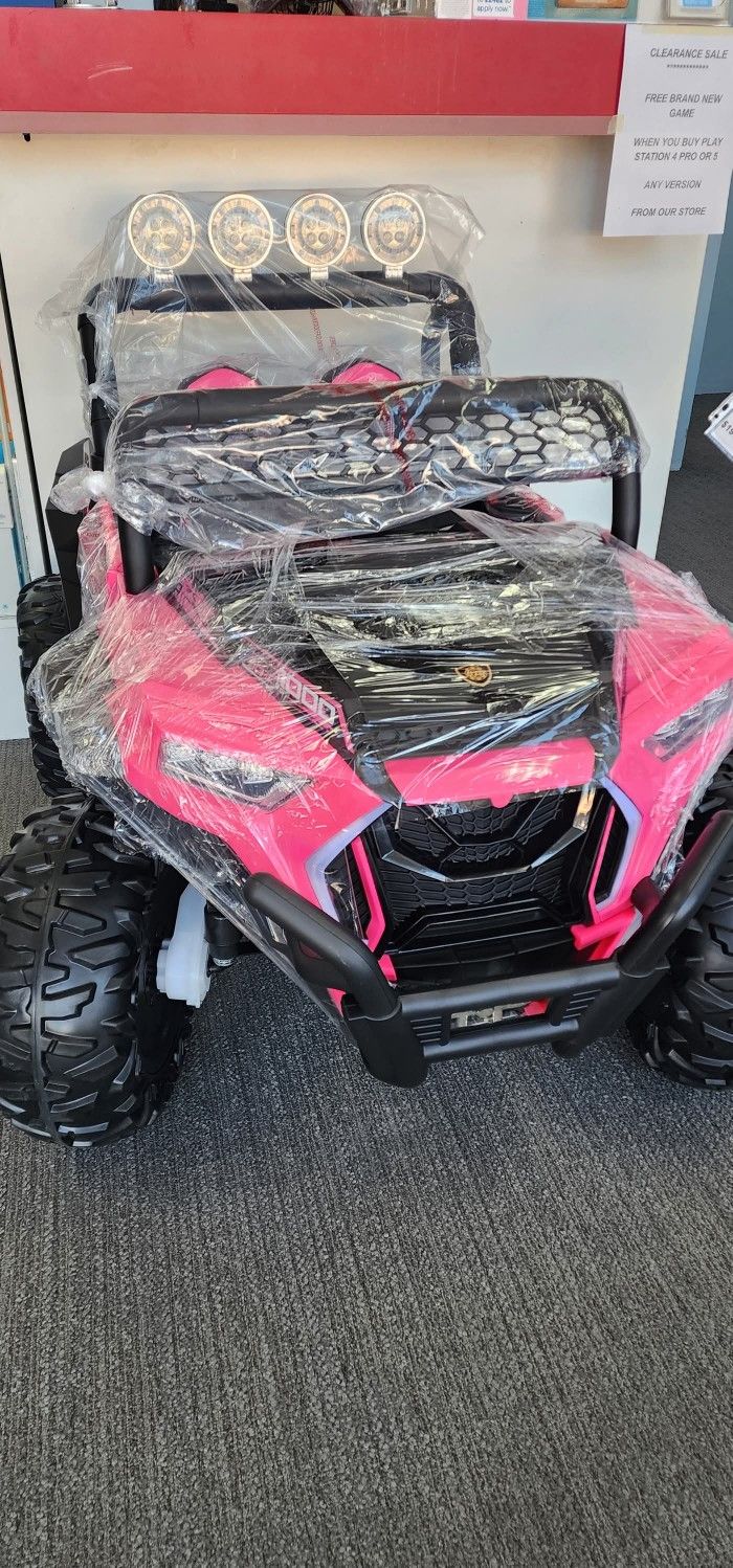 ELECTRIC CAR FOR KIDS 12 VOLT BATTERY 4*4 ELECTRIC ENGINES PINK COLOR REMOTE CONTROL AND CHARGER HEADLIGHTS AND TAIL LIGHTS +STAND LIGHTS BUILT-IN MUSIC USB+AUX INPUT TIRES ARE RUBBER+SUSPENSIONS OPEN DOORS 2 SEATS+SEATBELT SWING OPTION FOR BABIES TO SLEEP 30 DAY WARRANTY FOR BATTERY ONLY