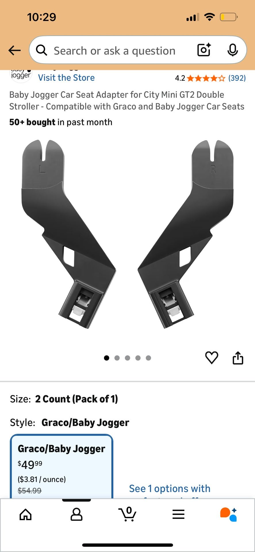 Baby Jogger Car Seat Adapter for City Mini GT2 Double Stroller - Compatible with Graco and Baby Jogger Car Seats