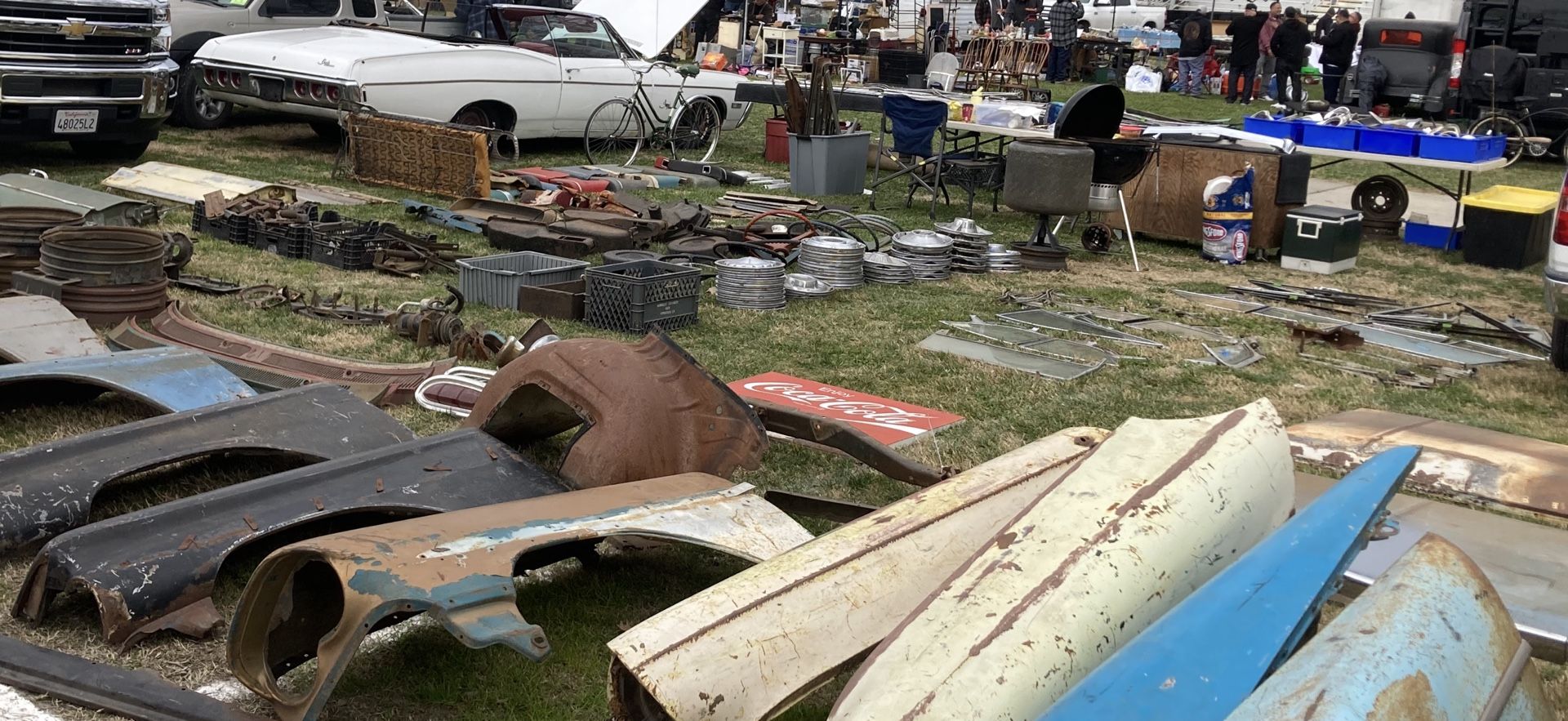 Lots of Parts! Hub caps, moldings,convertible racks,hood hinges! and much more! JJ17 at the Turlock swap meet! Down by the soderquist main entrance make the 3 rd right. 59 chevy station wagon parts, interior trim 63-4 doors no rust